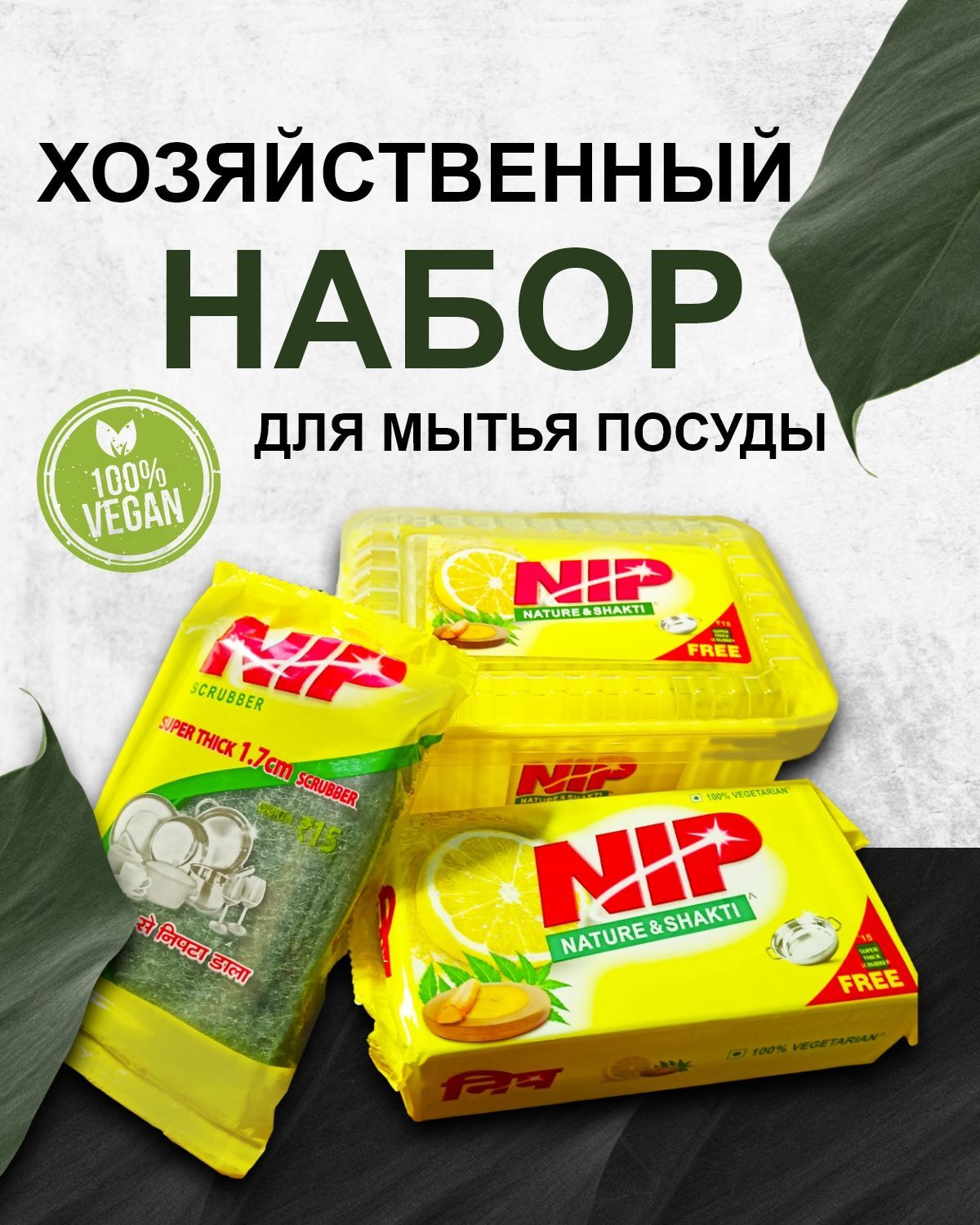 Мыло универсальное для мытья посуды, губка, пластиковая упаковка