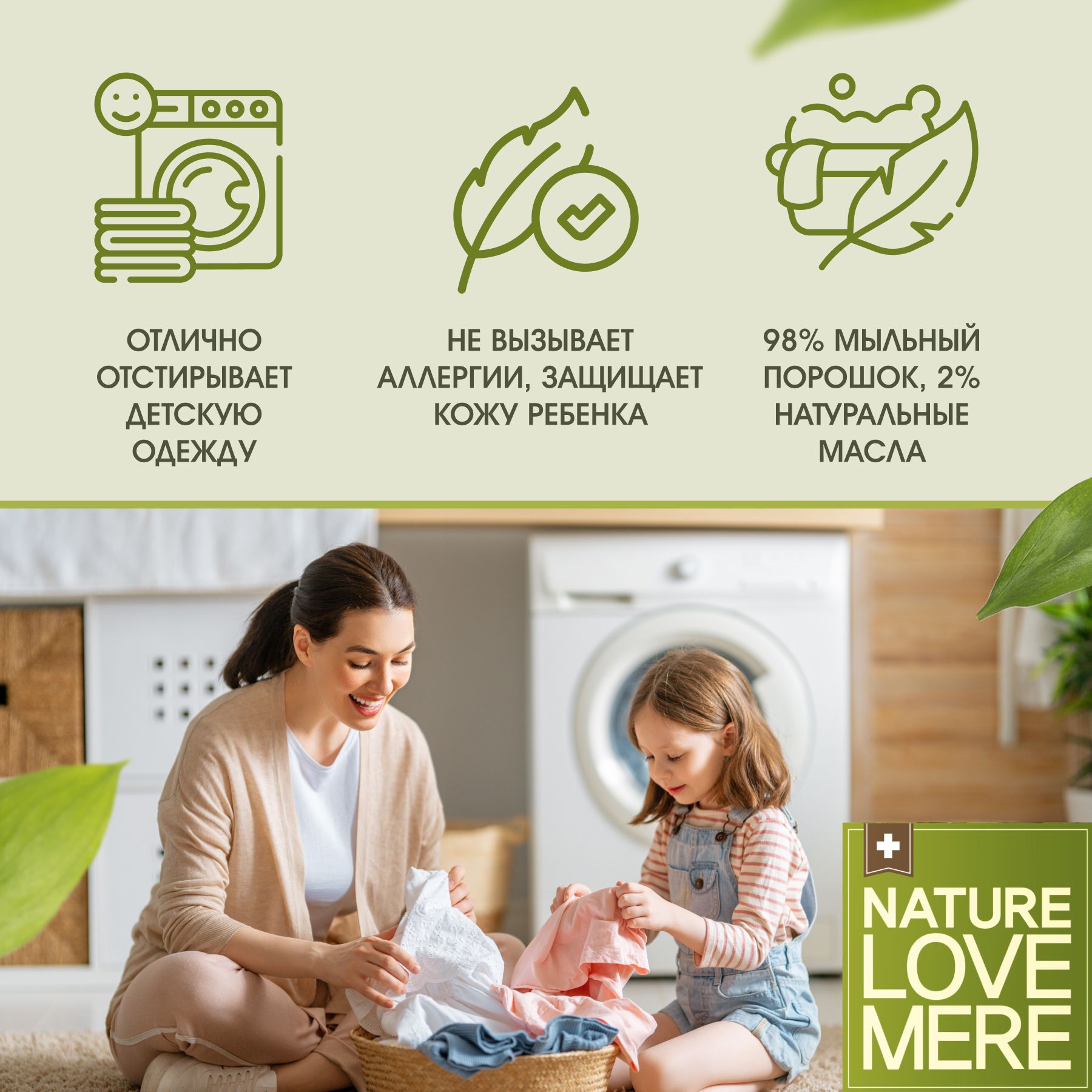 Описание: Хозяйственное мыло для стирки эффективно справляется с загрязнениями и уничтожает микробы, оставаясь при этом абсолютно безопасным для нежной кожи малыша и маминых рук. Мыло натуральное имеет в составе масло лаванды, известного своими заживляющими и противовоспалительными свойствами. Вы расстанетесь со стереотипом, что хозяйственное мыло агрессивное и плохо пахнет. Детское мыло хозяйственное Nature Love Mere состоит только из натуральных ингредиентов растительного происхождения без добавления токсичных ПАВ, консервантов, пигментов, отбеливателей и тяжелых металлов. При этом идеально отстирывает бельё и выводит пятна. Детское натуральное мыло кусковое подходит для новорожденных детей и аллергиков. Способ применения: хорошо намылить загрязненный участок или предмет одежды целиком. Оставить на 15-30 минут, а потом тщательно прополоскать. Можно замочить вещи в мыльном растворе на 1-2 часа. Меры предосторожности: мыло детское использовать строго по назначению. Хранить мыло для стирки белья в недоступном для детей месте. Если мыло пятновыводитель попало в глаза -  промыть проточной водой. При проглатывании незамедлительно обратиться к врачу.