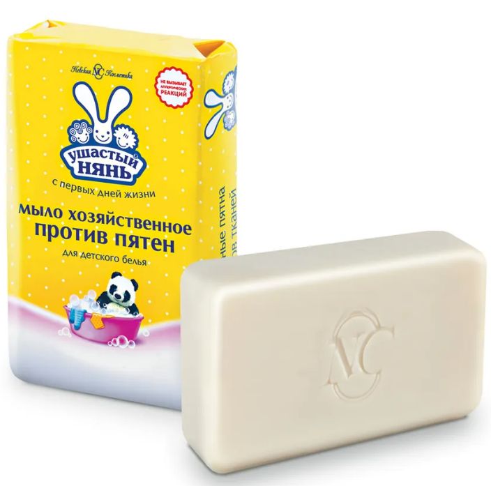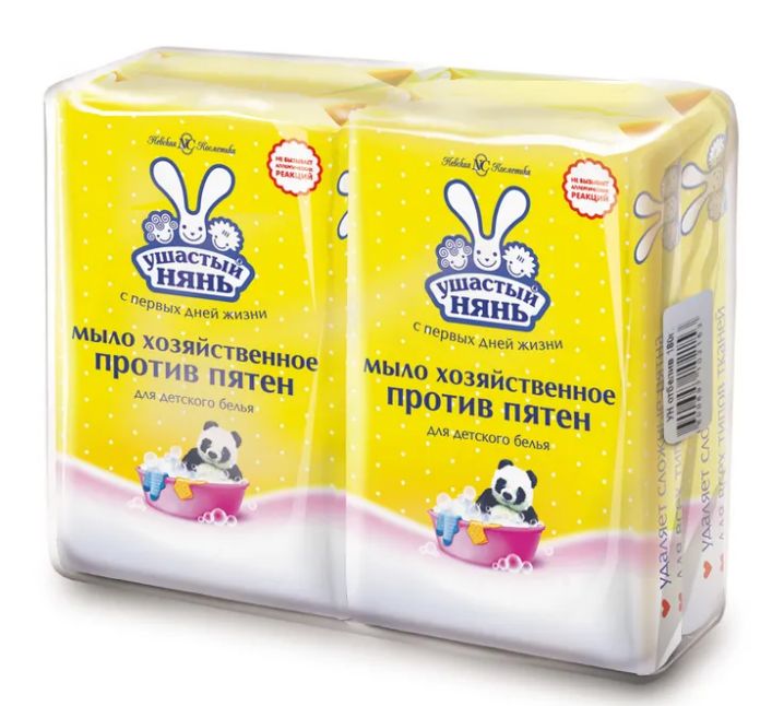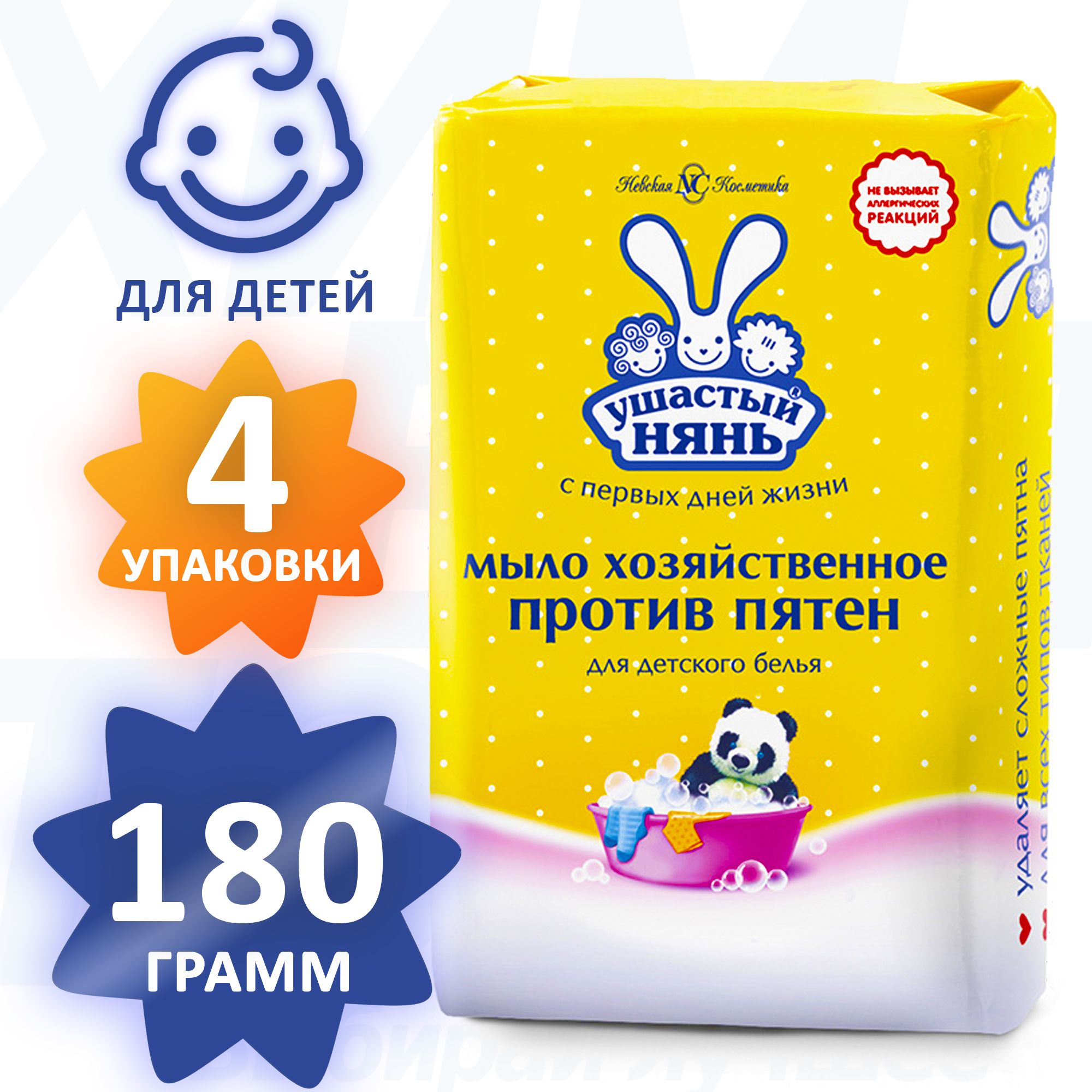 Мыло для стирки детского белья Ушастый Нянь против пятен, хозяйственное, гипоаллергенное, без отдушки, 180г, 4 шт