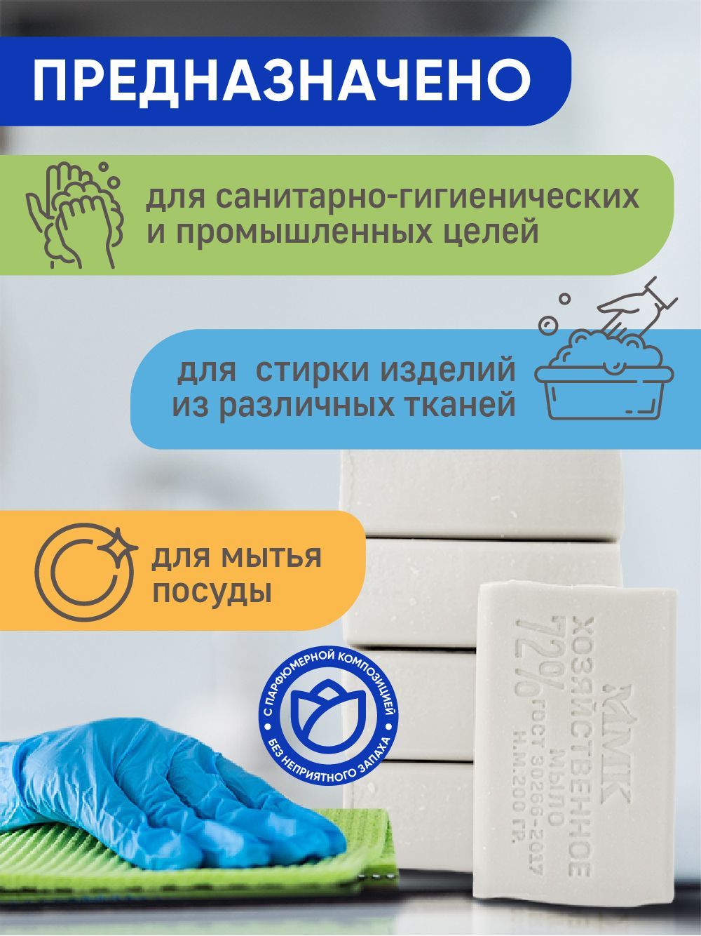 Описание: Мы предлагаем попробовать набор мыла хозяйственного твёрдое 72 % , изготовленное согласно ГОСТ 30266-2017, производитель  ООО «ММК».