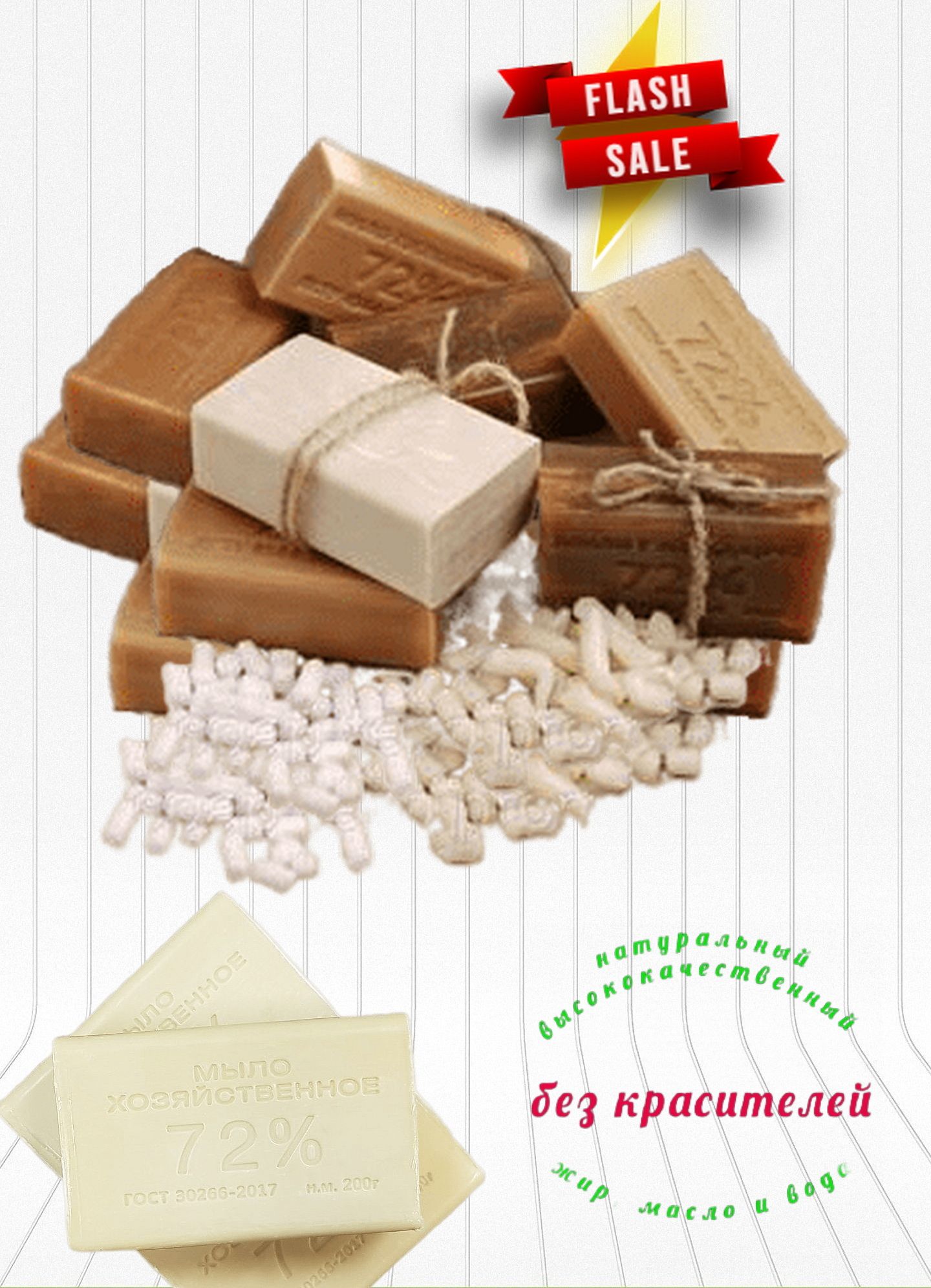 Хозяйственное мыло 72% твердое кусковое - лучший помощник в поддержании чистоты и борьбы с бактериями. 100% органический состав обеспечивает гарантию всех перечисленных свойств.  Экологичный продукт, абсолютно безвреден для детей и для взрослых!