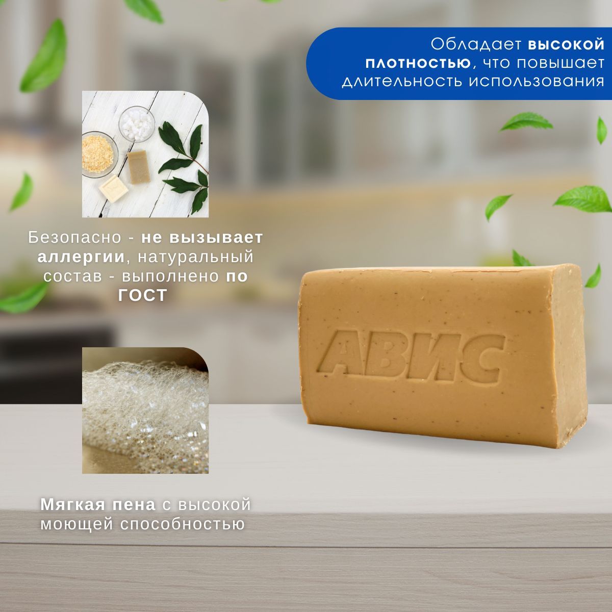 Достоинства мыла хозяйственного 72%  "АВИС": Абсолютно Экологично - натуральный и сбалансированный состав;