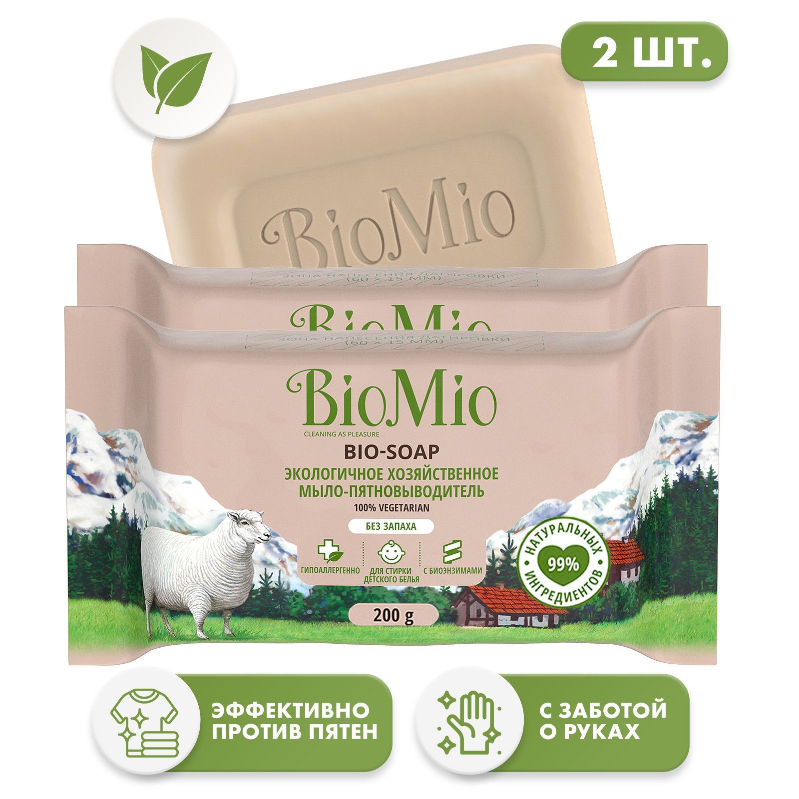 Мыло хозяйственное BioMio Bio-Soap c пятновыводитель, экологичное, 200 г х 2 шт