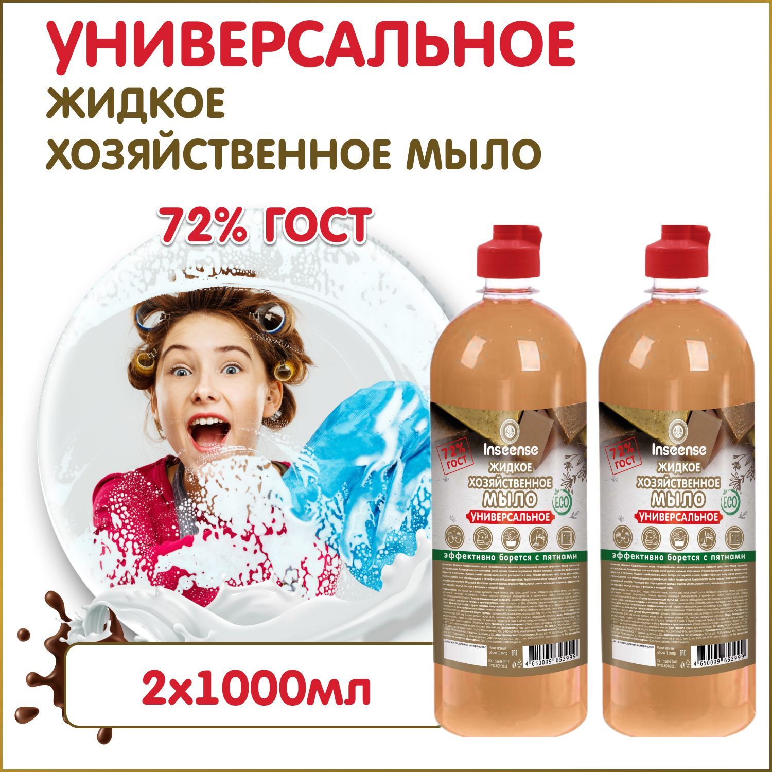 Мыло хозяйственное INSEENSE универсальное 1000 мл (2 шт.)