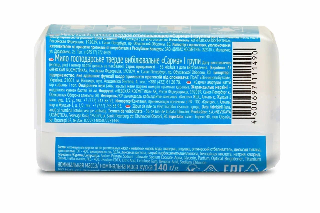 Мыло хозяйственное Sarma отбеливающее 140 грамм-4 шт.