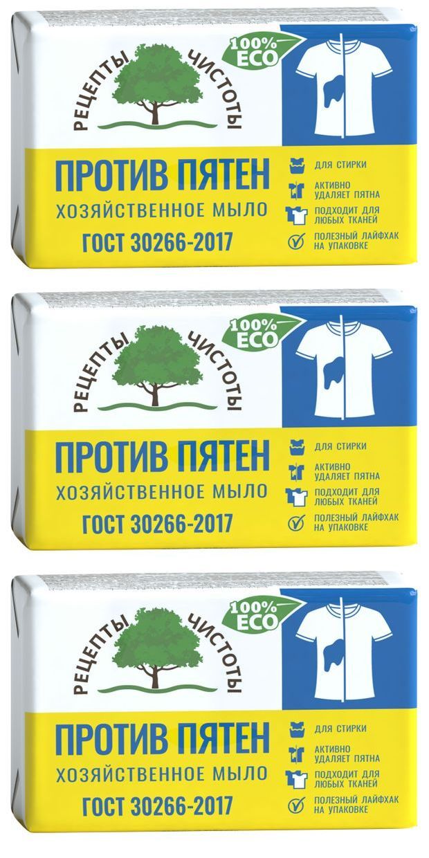 Мыло хозяйственное Рецепты чистоты против пятен, 3 уп по 200 г