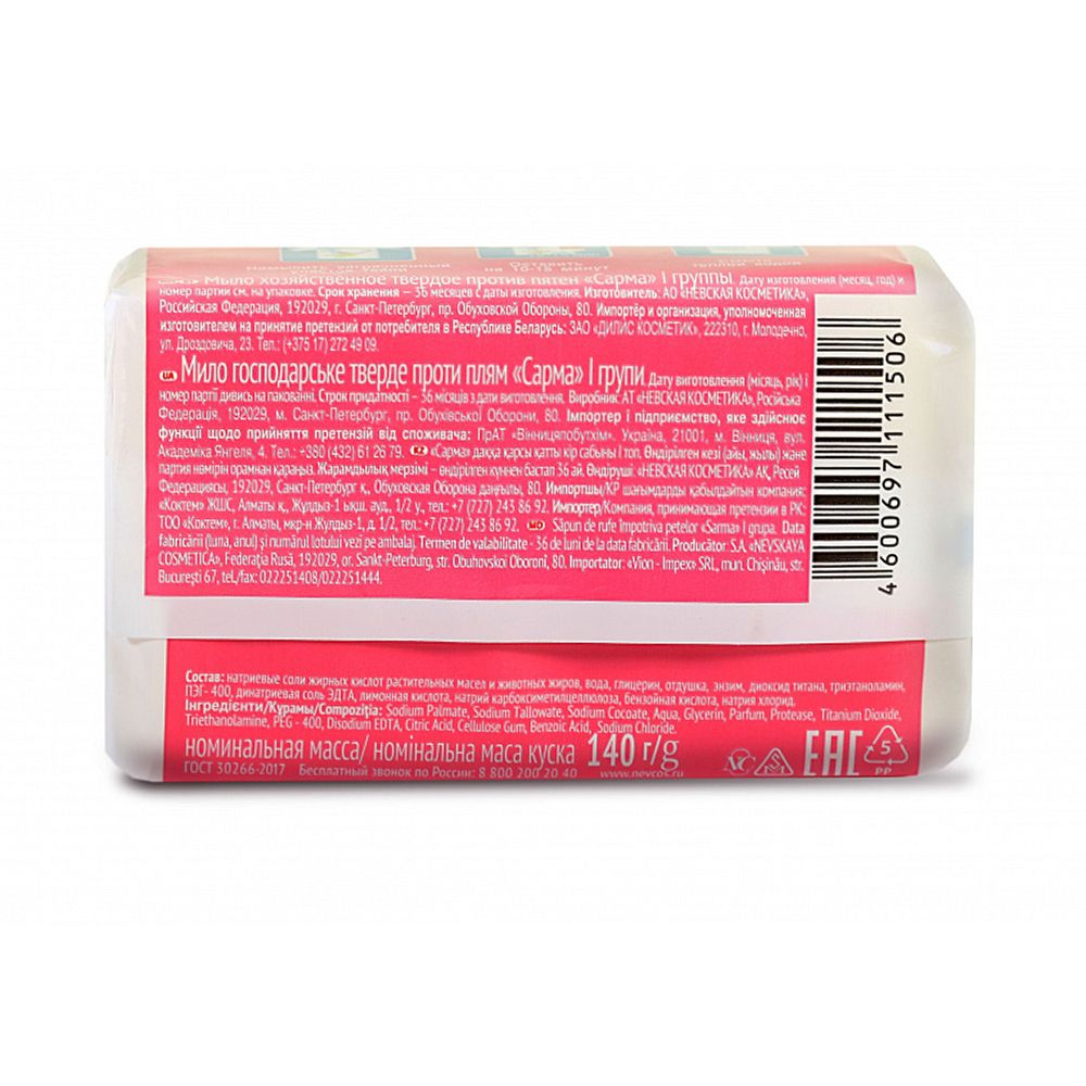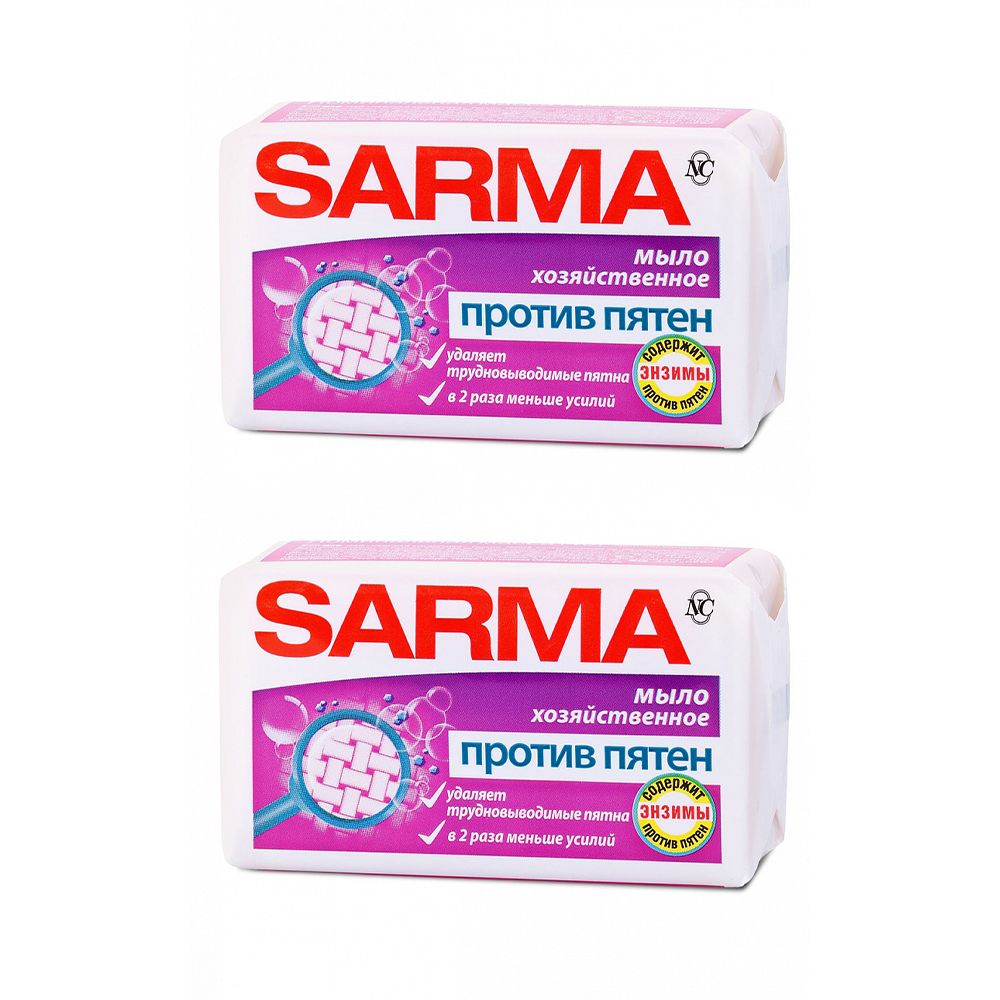 Мыло хозяйственное Sarma против пятен, с энзимом, ГОСТ, 140г 2 шт