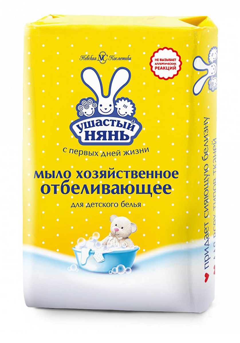 Описание: Гипоаллергенное хозяйственное мыло "Ушастый нянь" специально предназначено для стирки детского белья и подходит для всех типов тканей.