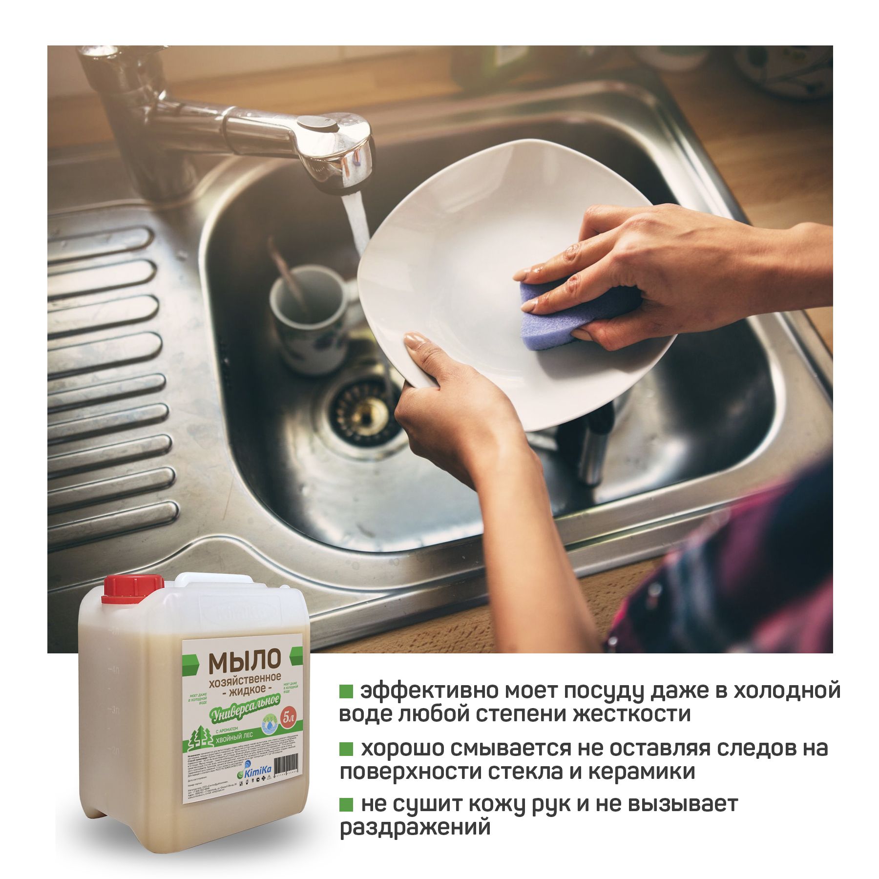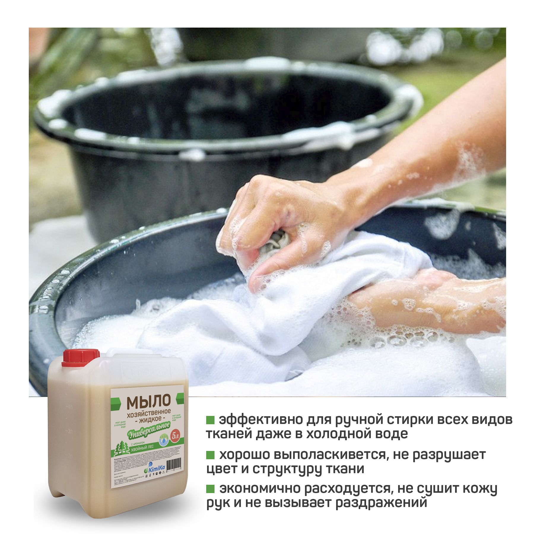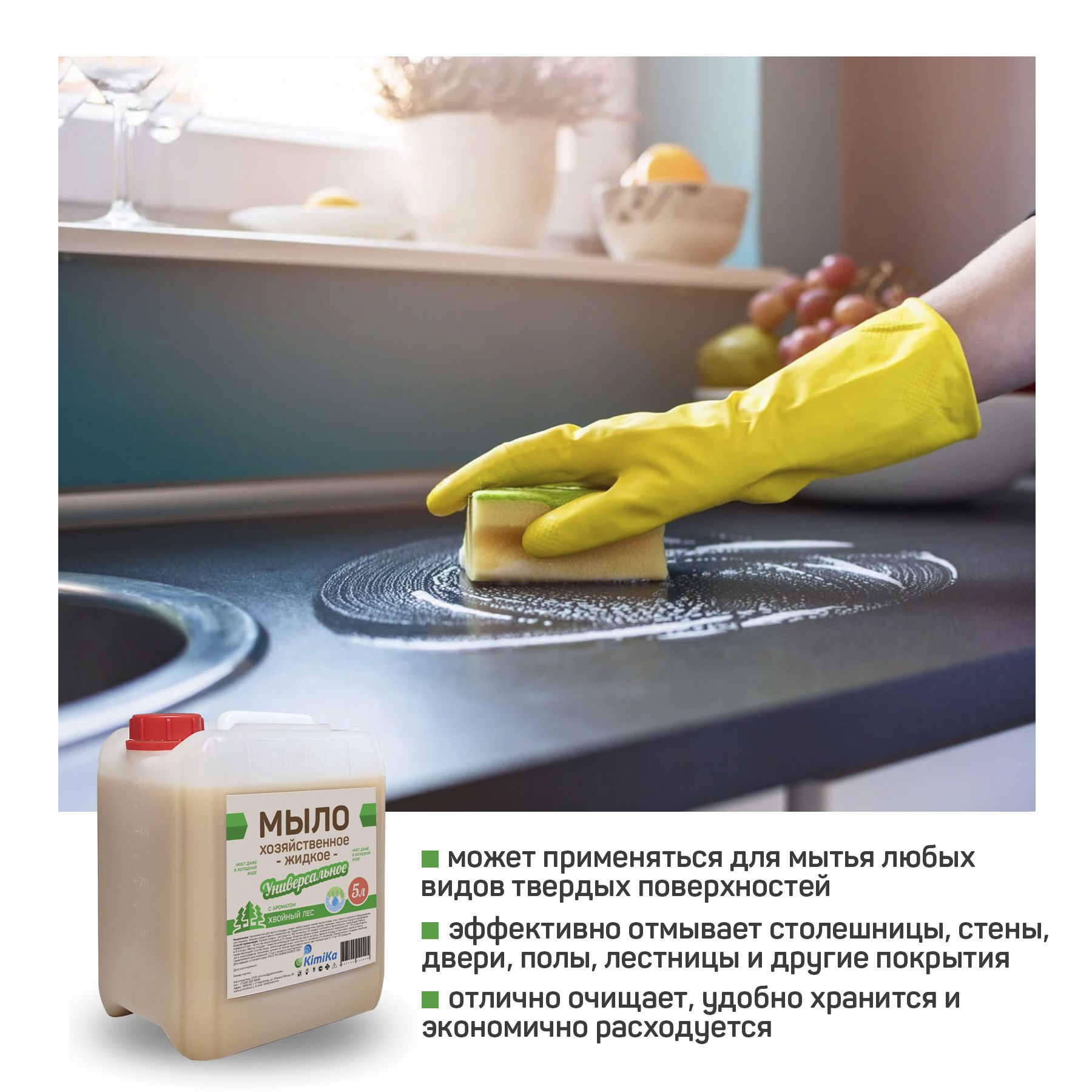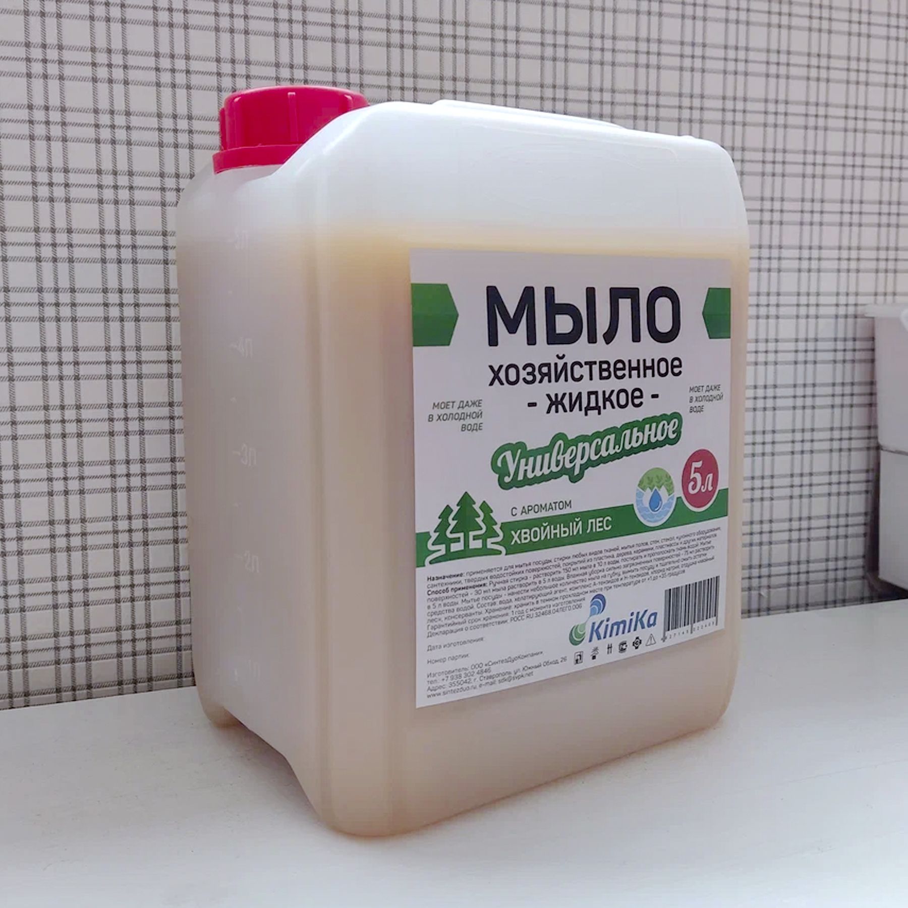 Мыло хозяйственное жидкое KimiKa для стирки и уборки, 5 литров, с ароматом хвойного леса