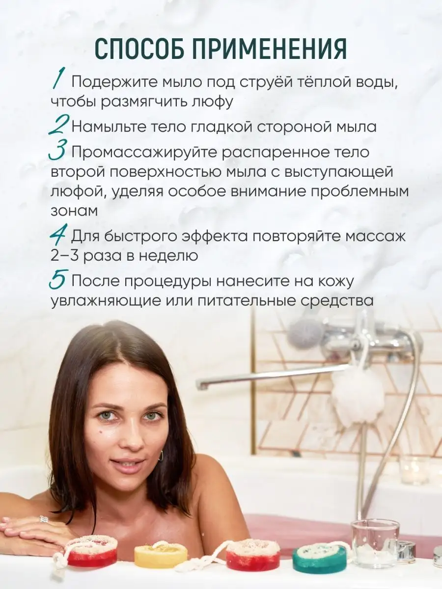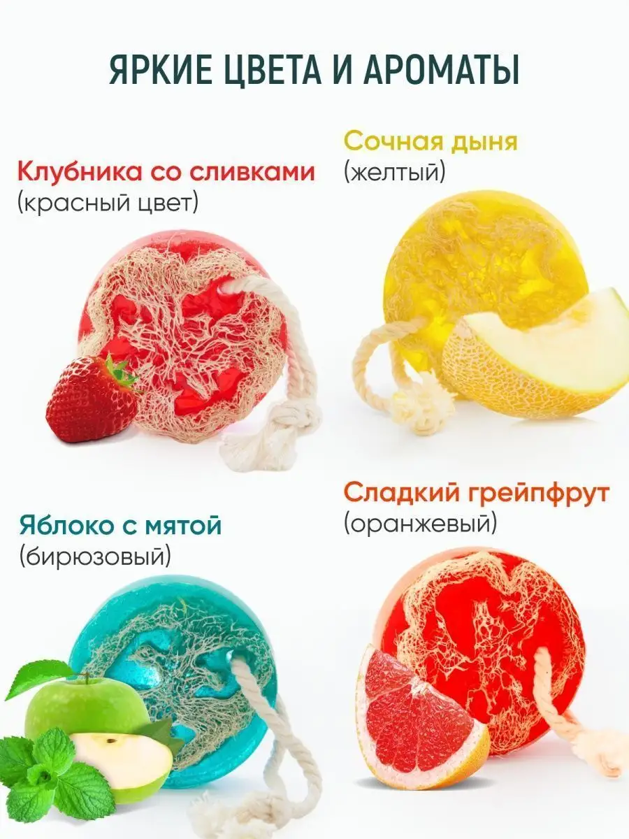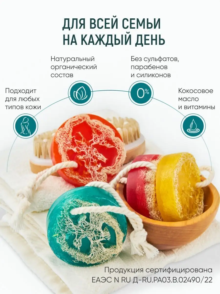 Артикул 103987582 Состав мыльная основа органическая; люффа; пигмент косметический; отдушка косметическая; парфюмерная композиция; Мочалка из люфы
