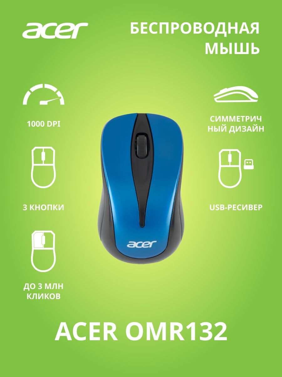 Описание: Беспроводная мышь Acer OMR132 имеет симметричный дизайн, что позволяет пользоваться этой мышкой одинаково комфортно как правой, так и левой рукой. Модель подключаются к компьютеру или ноутбуку через USB-ресивер по радиоканалу с частотой 2,4 ГГц и дальностью действия до 10 м.
