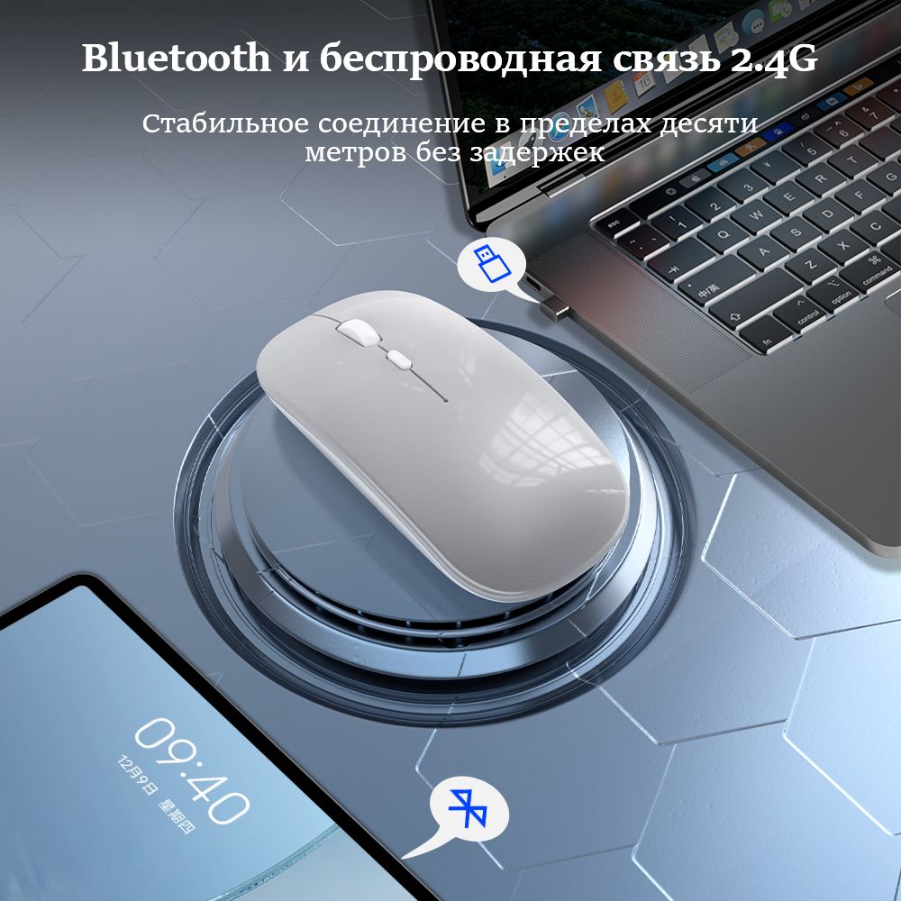 мышь беспроводная аккумуляторная Bluetooth мышь компьютерная бесшумная мыши для ноутбука пк,1600DPI