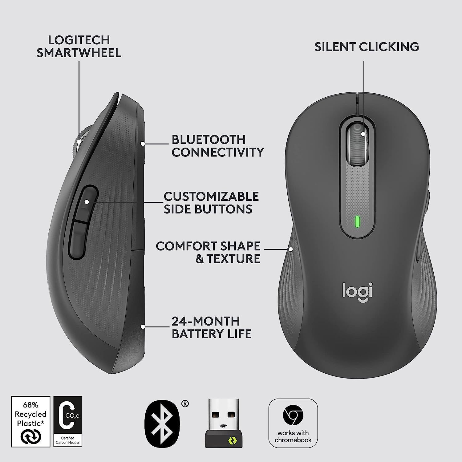 Мышь беспроводная Беспроводная мышь Logitech Signature Cordless Mouse, M650L, рассчитана на большие руки, что обеспечивает оптимальную посадку., черный