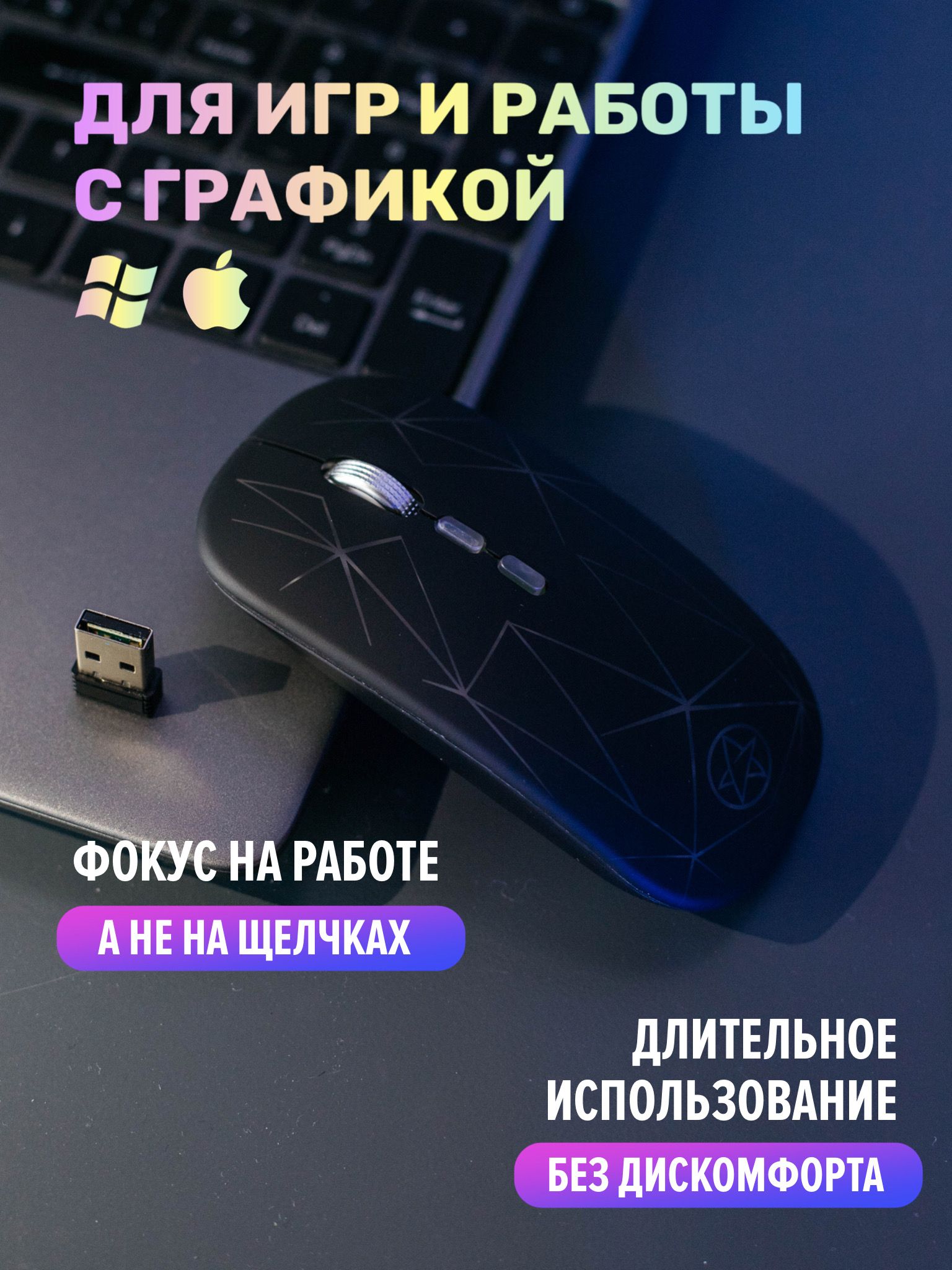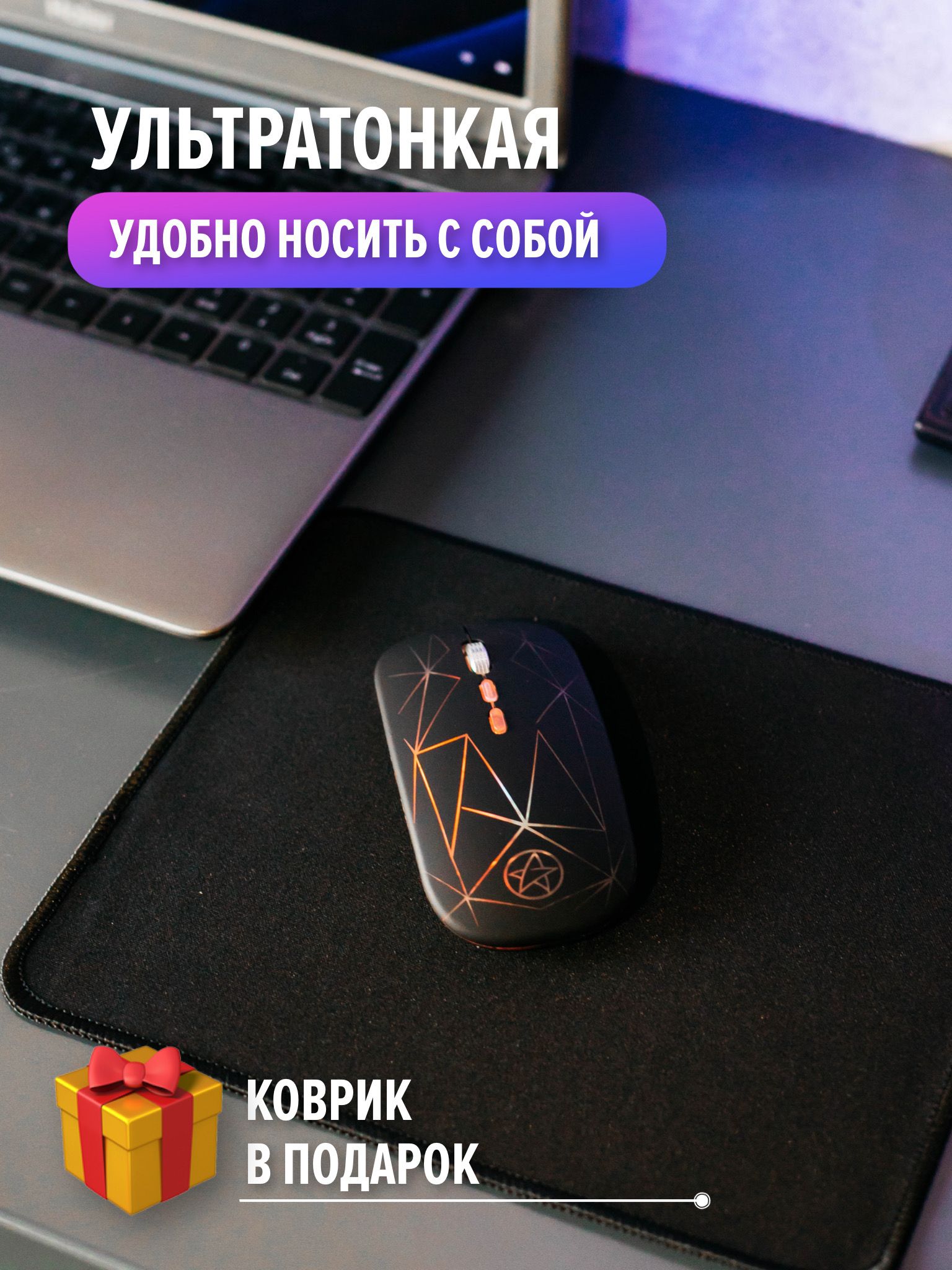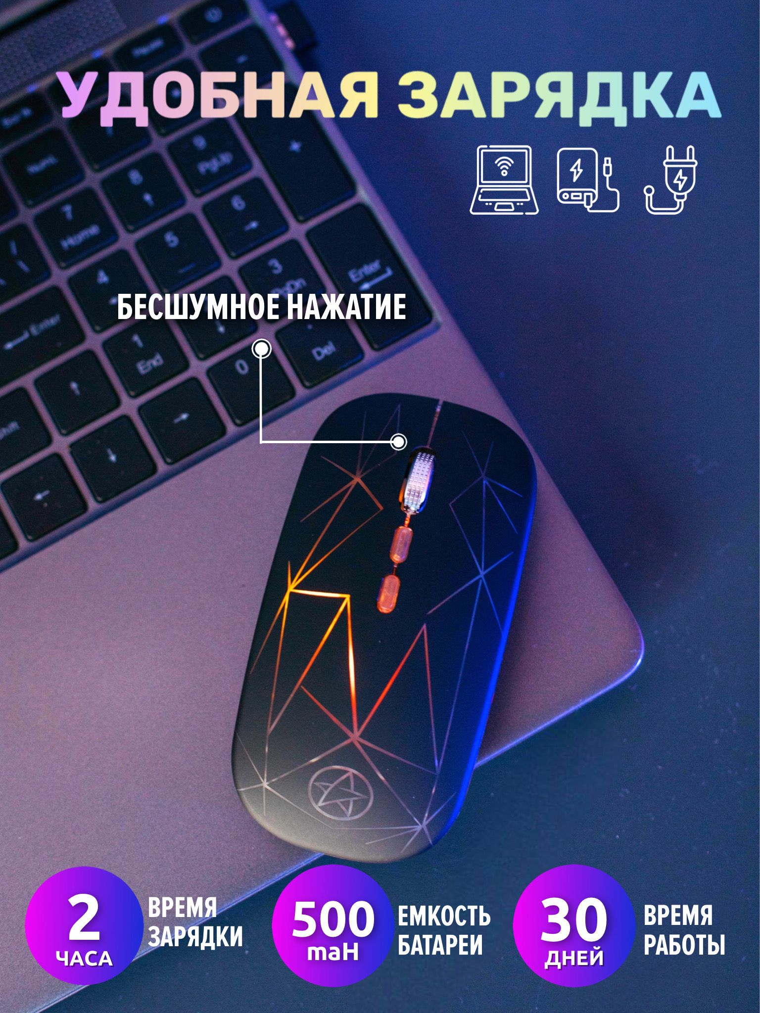 Описание: Компактная эргономичная мышь с бесшумным кликом работает в радиусе 10 метров от компьютера. Бесшумное нажатие не отвлекает при работе. Заряжается мышка через usb-кабель, батареек не требует. Полный заряд устройство набирает за 2 часа, хватает на 30 дней работы. Оптический сенсор обеспечивает точное и плавное перемещение курсора на мониторах высокого разрешения. Компьютерная мышь оснащена двумя классическими кнопками, колесиком, оптическим сенсором с чувствительностью 1600 dpi, внутри перезаряжаемый литиевый аккумулятор. Срок службы клавиш 5 миллионов нажатий. Вес 90 г. Беспроводная мышка с подсветкой совместима с Windows и MAС. В подарок к мыши идет стильный коврик. Отличный подарок для девушки, мужчины и ребенка. Также нас ищут: компьютерная мышь с подсветкой мышь для игр мышь беспроводная светодиодная с ковриком для ноутбука мышь для компьютера игровая мышь бесшумная мышь компьютерная беспроводная мышка плоская мышь