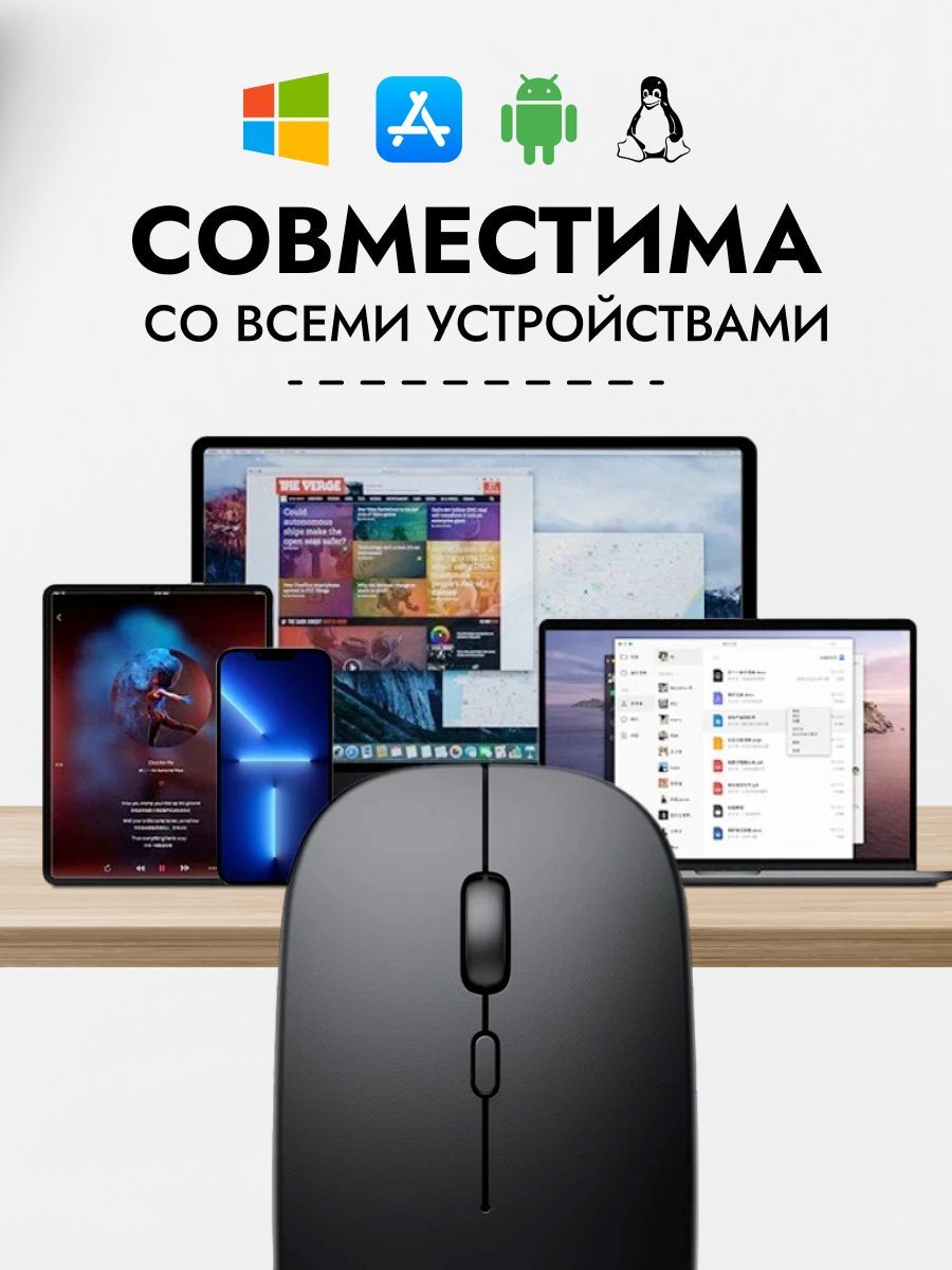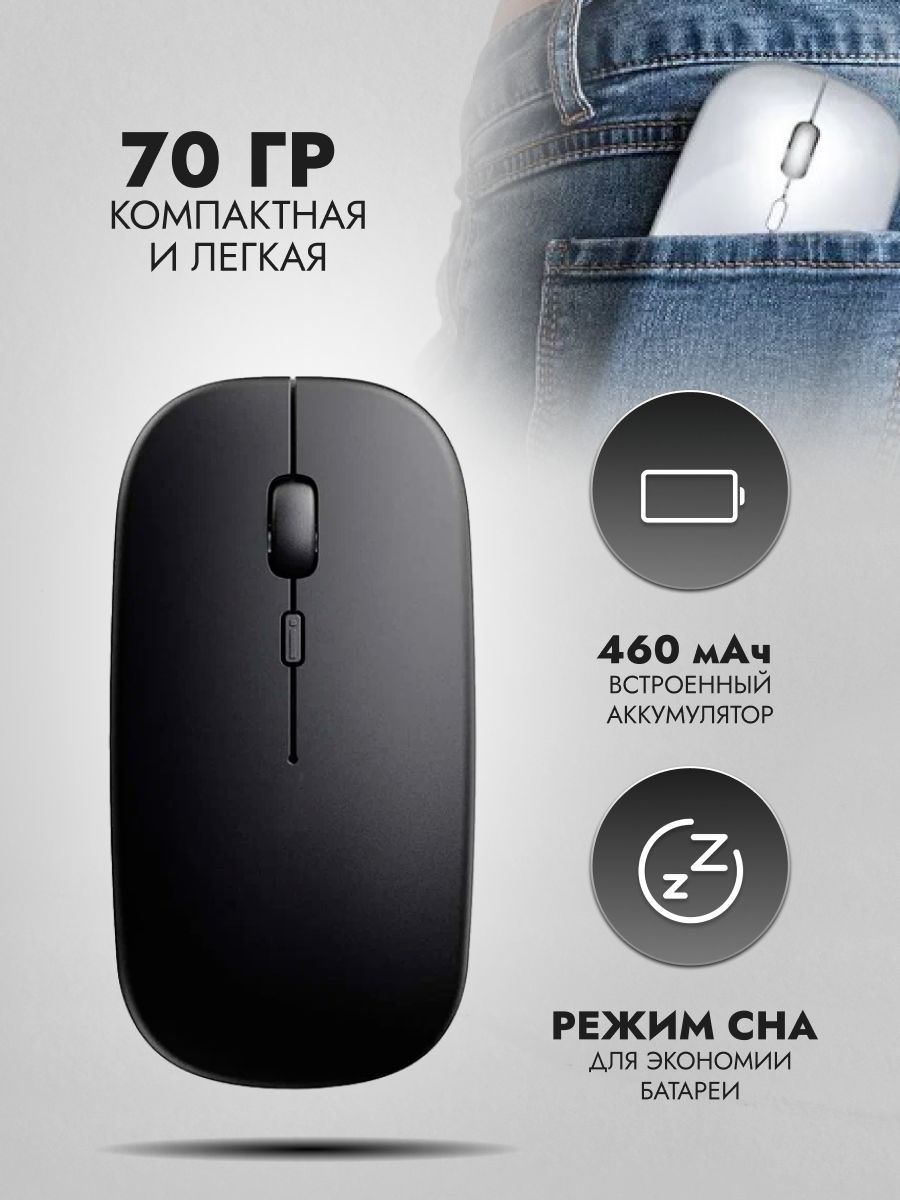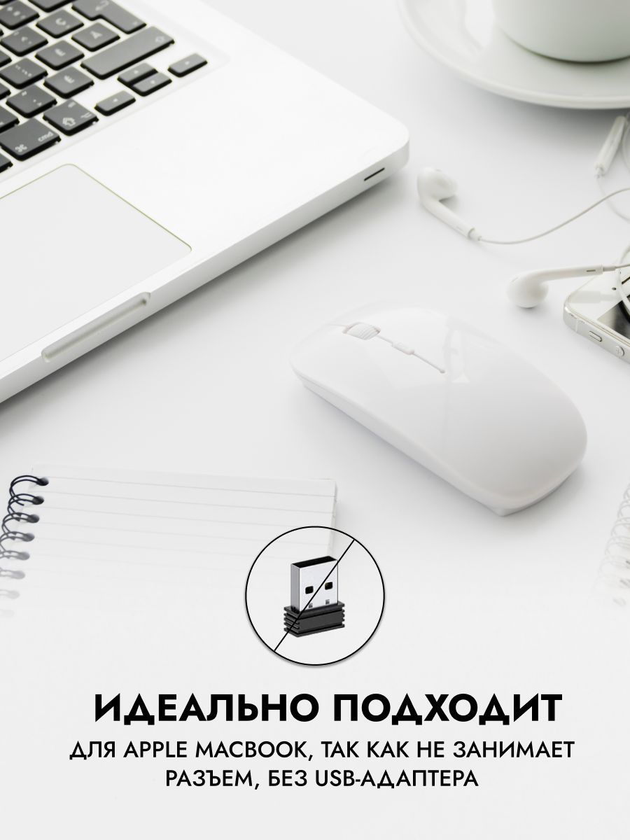 Описание: ВАЖНО!  Рекомендуется использовать с адаптеромМышку возможно использовать как с адаптером, так и без адаптера - по Bluetooth. Для более устойчивого соединения рекомендуется использовать адаптер (в комплекте), а для устройств Apple переходник Type-C/USB (приобретается отдельно)Встроенный аккумуляторМышка заряжается через разъем micro-USB, который поставляется в комплекте