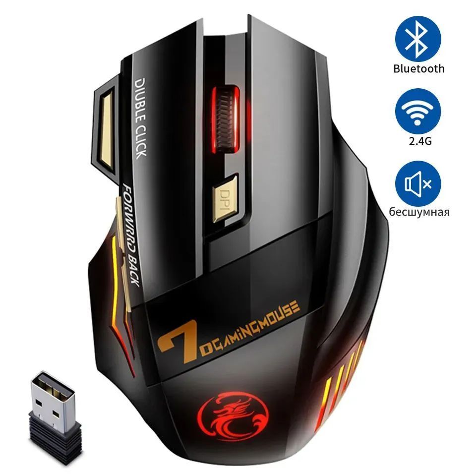 Мышь беспроводная IMICE Игровая мышь USB беспроводная мышь компьютерная игровая мышь RGB подсветка бесшумная bluetooth мышь для компьютера ноутбука пк, черный