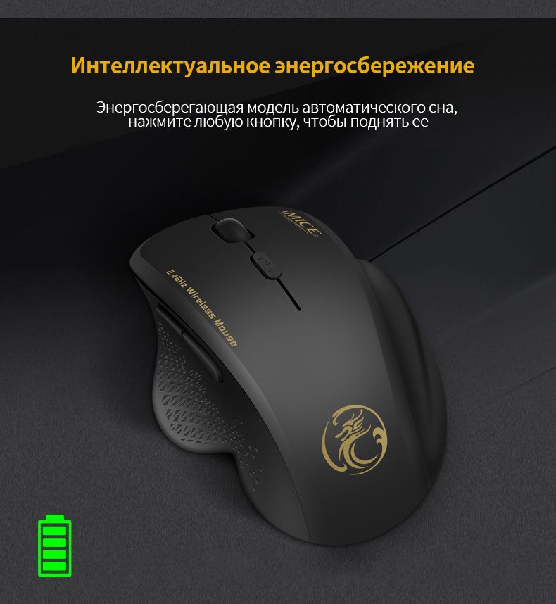 Мышь беспроводная IMICE мышь беспроводная игровая мышь USB Эргономика беспроводная компьютерная мышь для пк ноутбука, черный