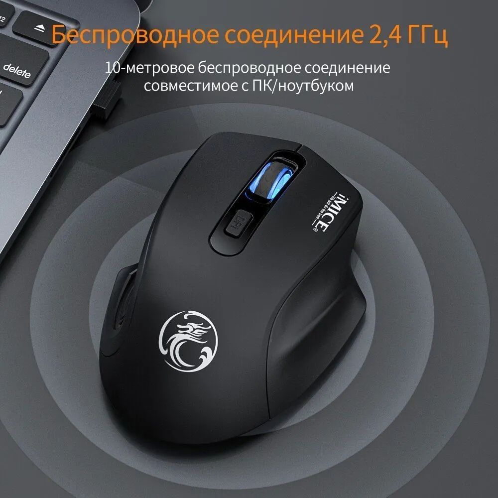 Мышь беспроводная IMICE мышь беспроводная компьютерная мышь 1600 DPI usb c аккумуляторная бесшумная игровая мышь для ноутбука, черный