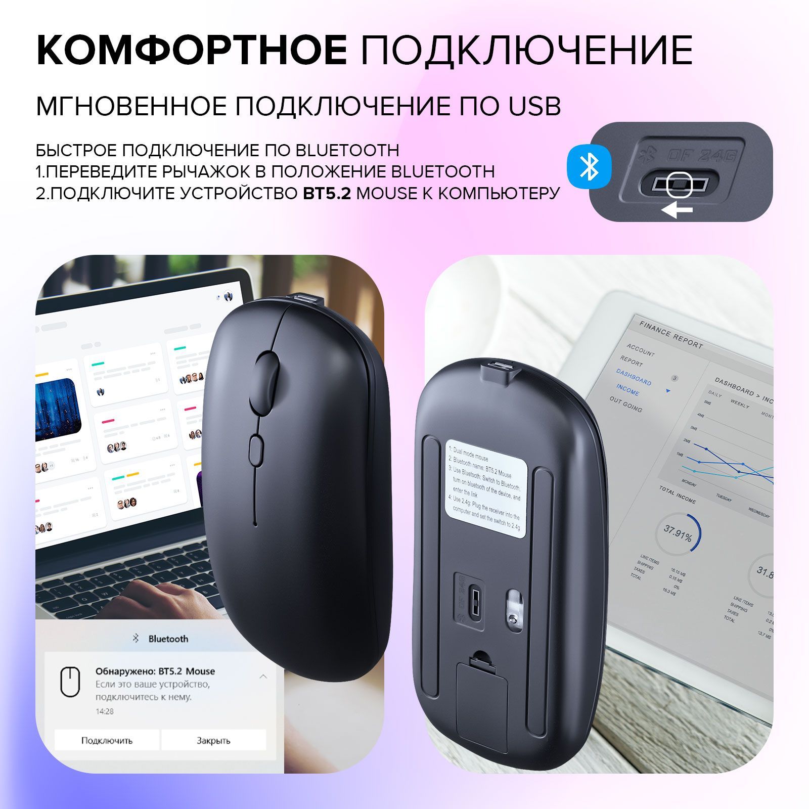 Мышь беспроводная компьютерная игровая бесшумная для компьютера, ноутбука, телевизора, планшета / Геймерская bluetooth (блютуз) мышка для ПК