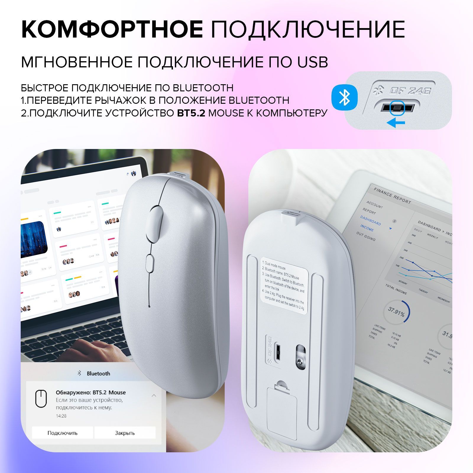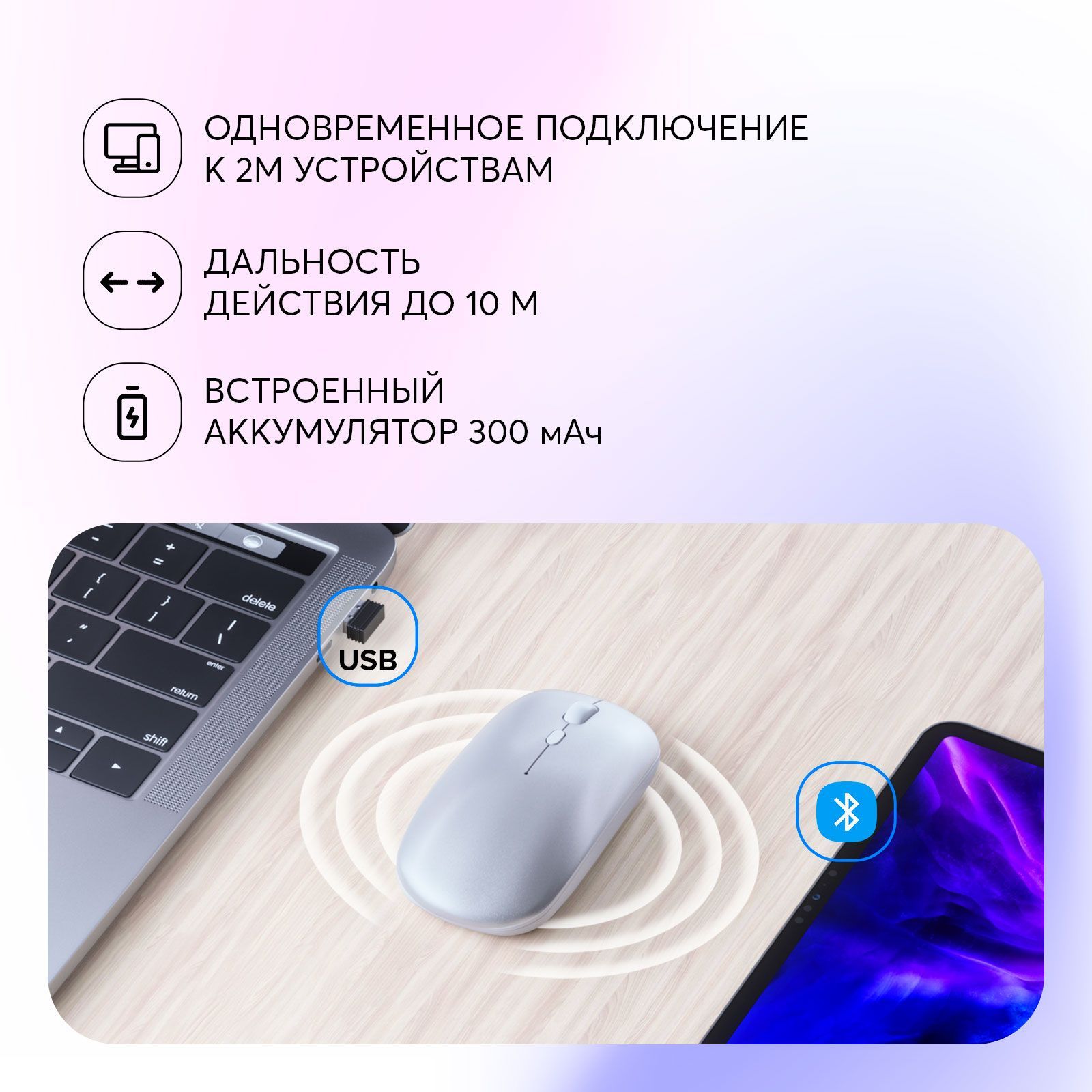 Мышь беспроводная компьютерная игровая бесшумная для компьютера, ноутбука, телевизора, планшета / Геймерская bluetooth (блютуз) мышка для пк / Серая