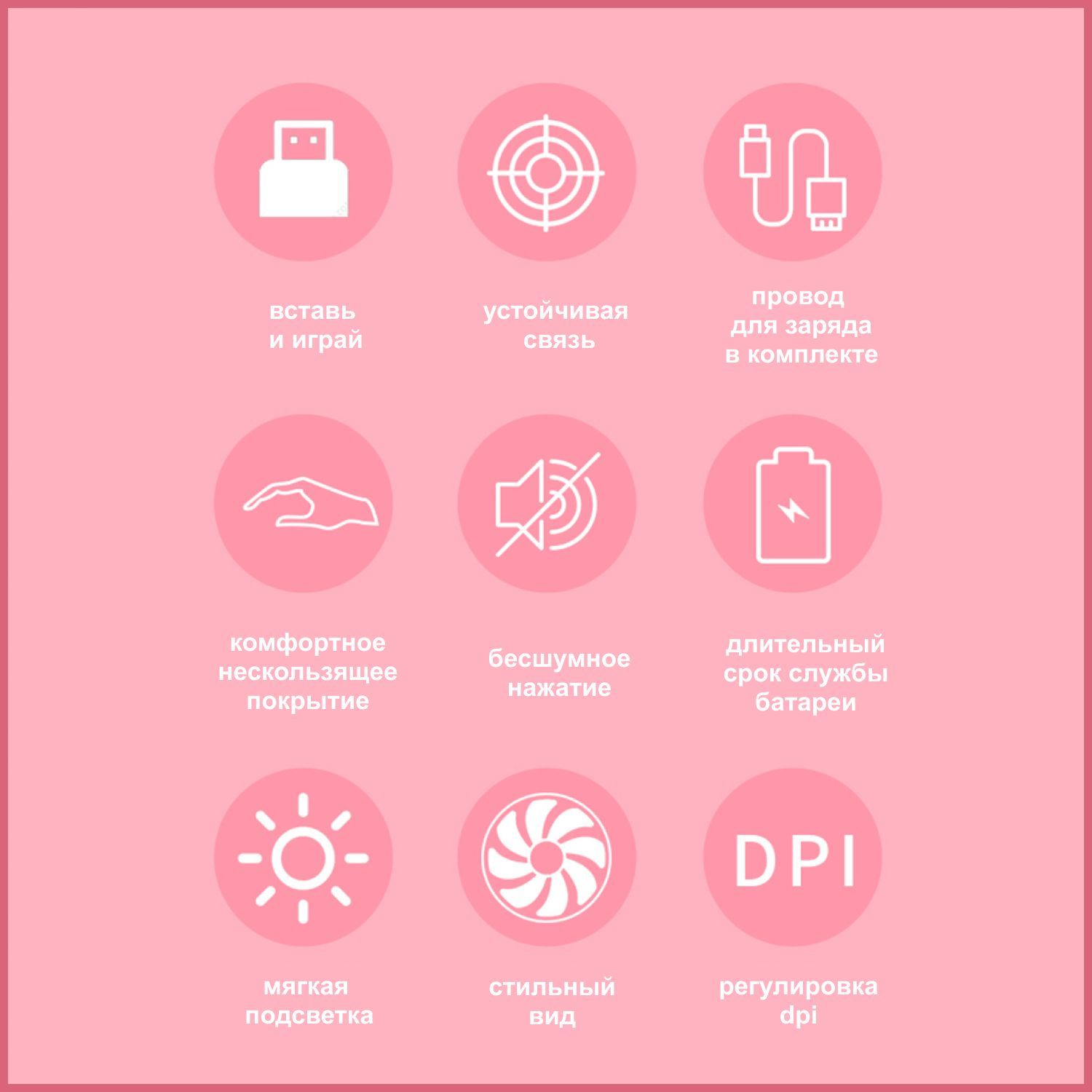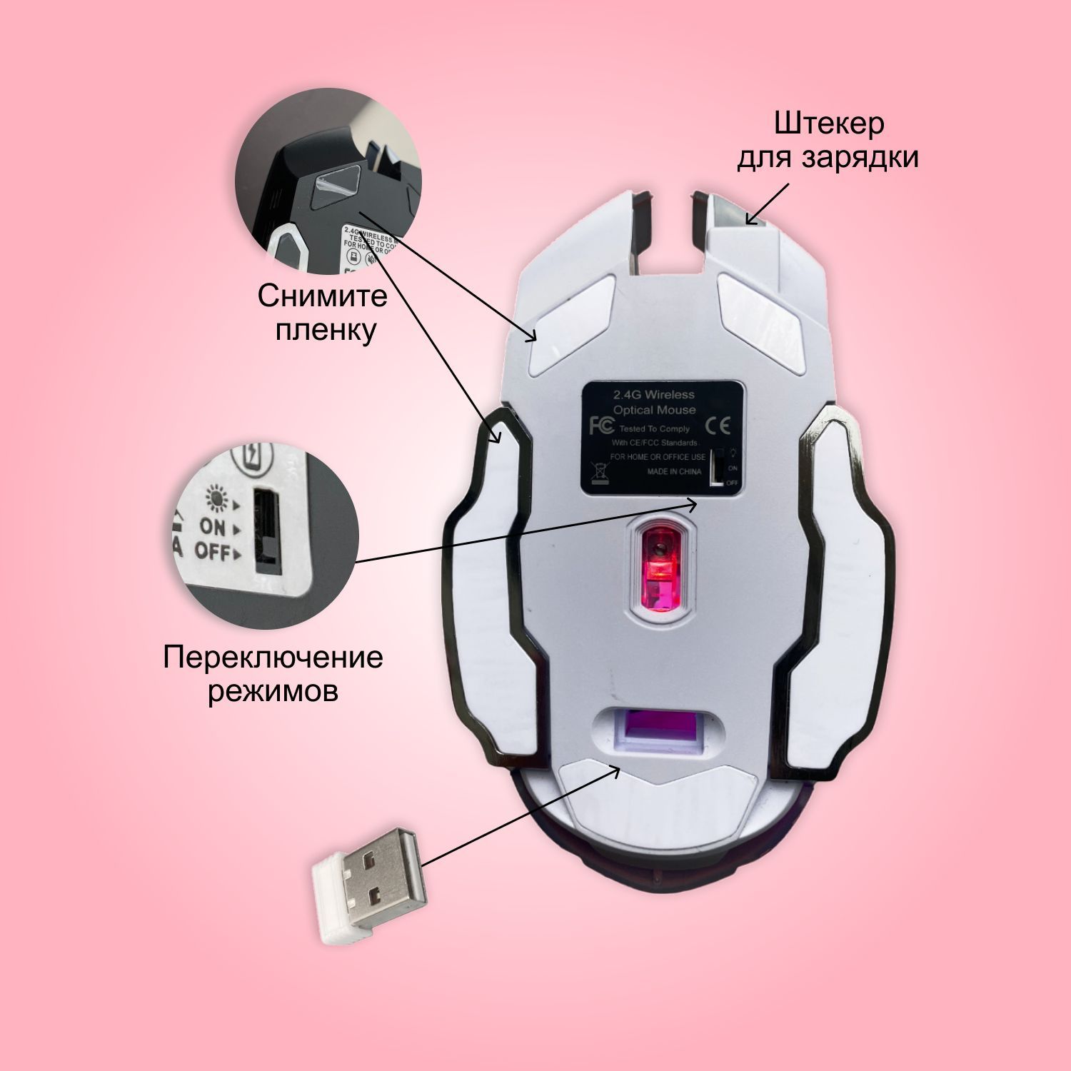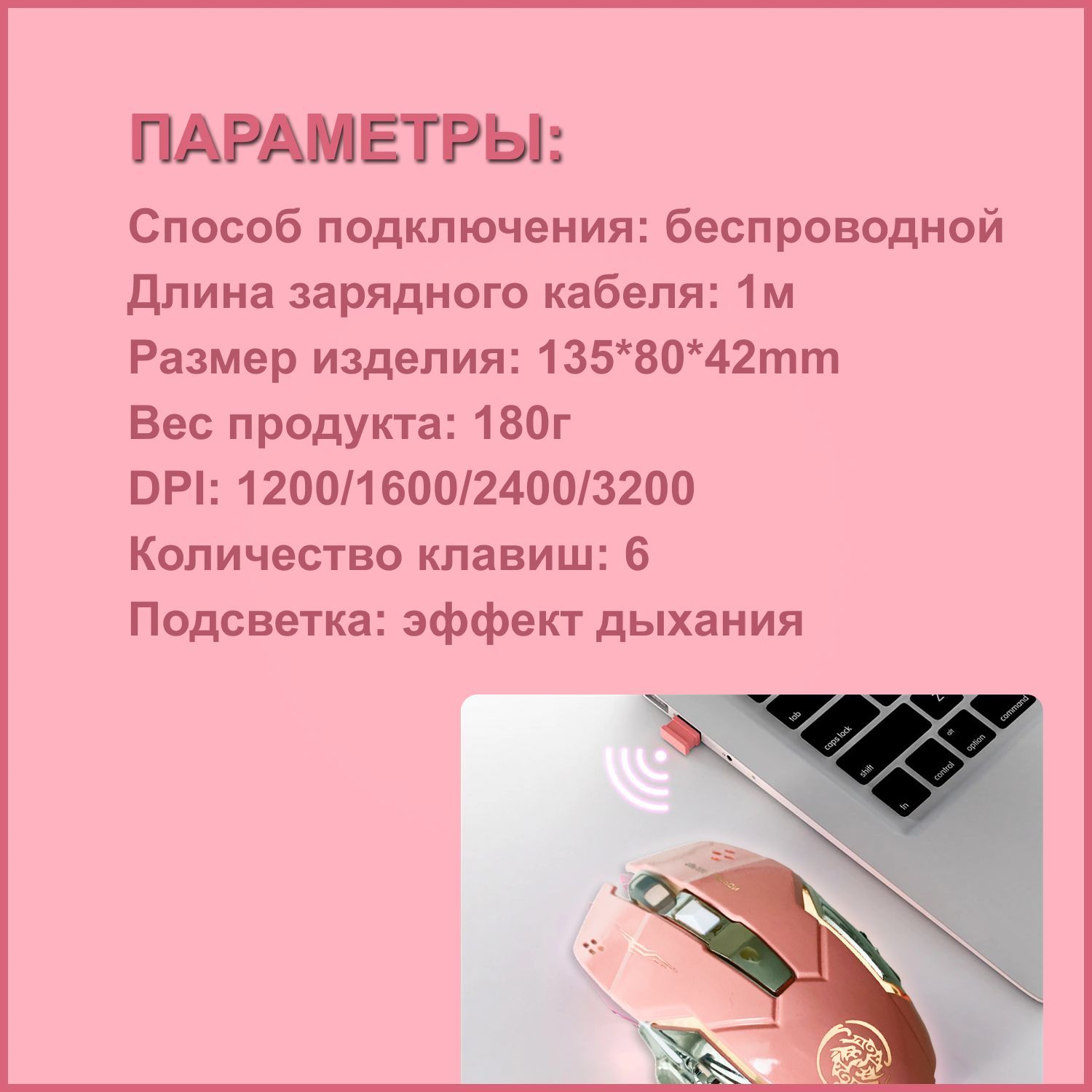 Мышь беспроводная компьютерная игровая бесшумная / Мышка оптическая 6 клавиш для компьютера/ ноутбука ко