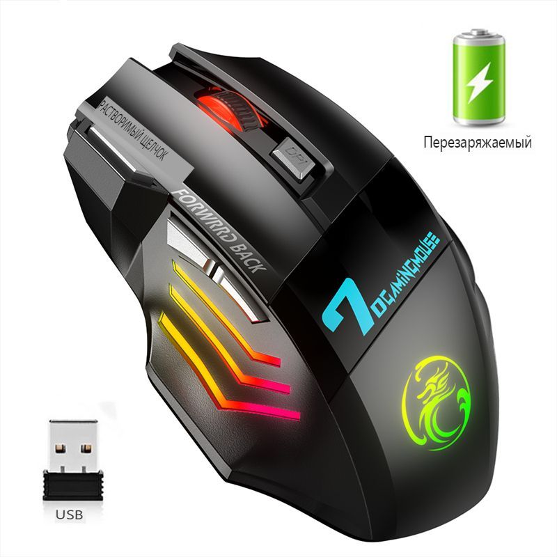 мышь беспроводная компьютерная игровая мышь бесшумная 5500 DPI с RGB подсветкой мышей