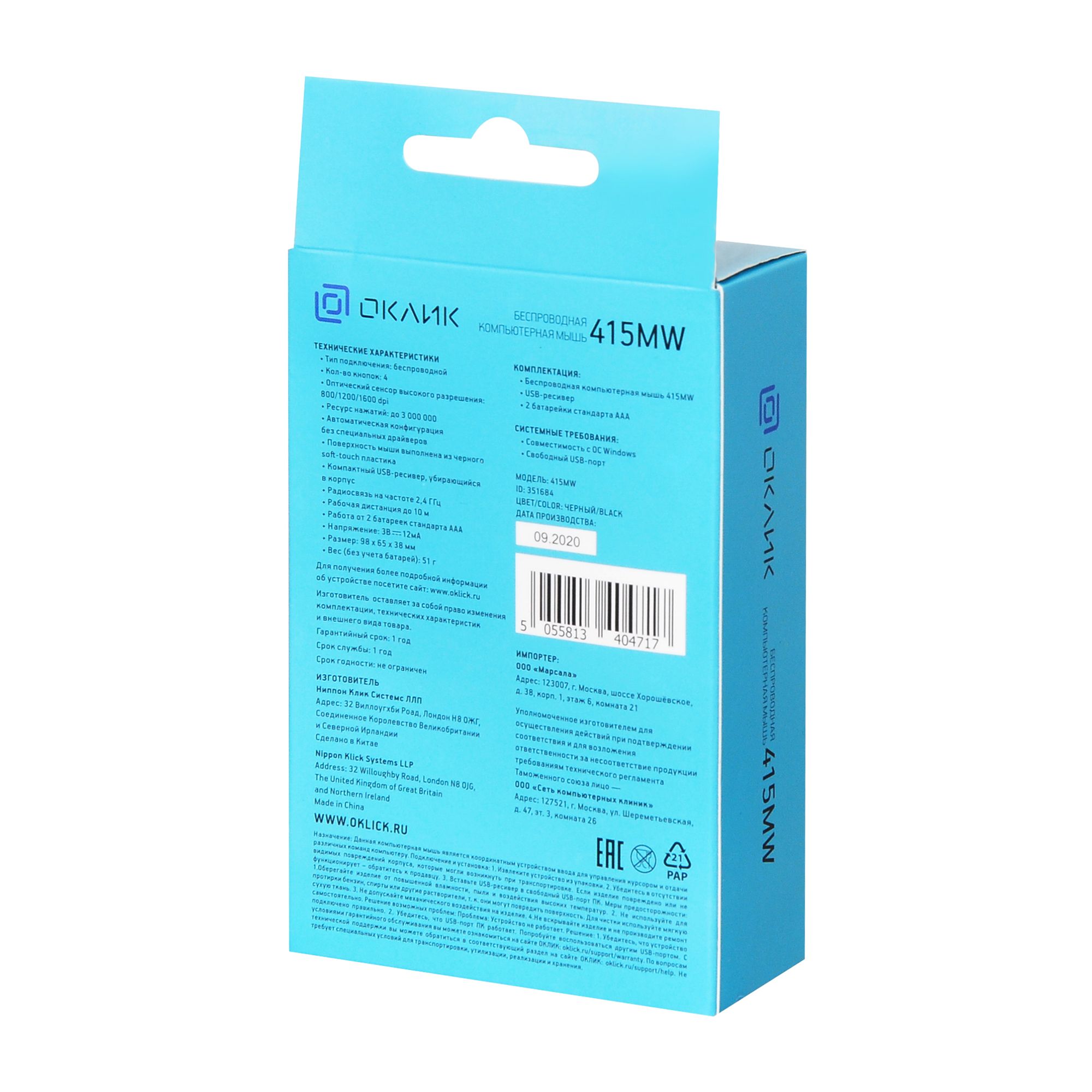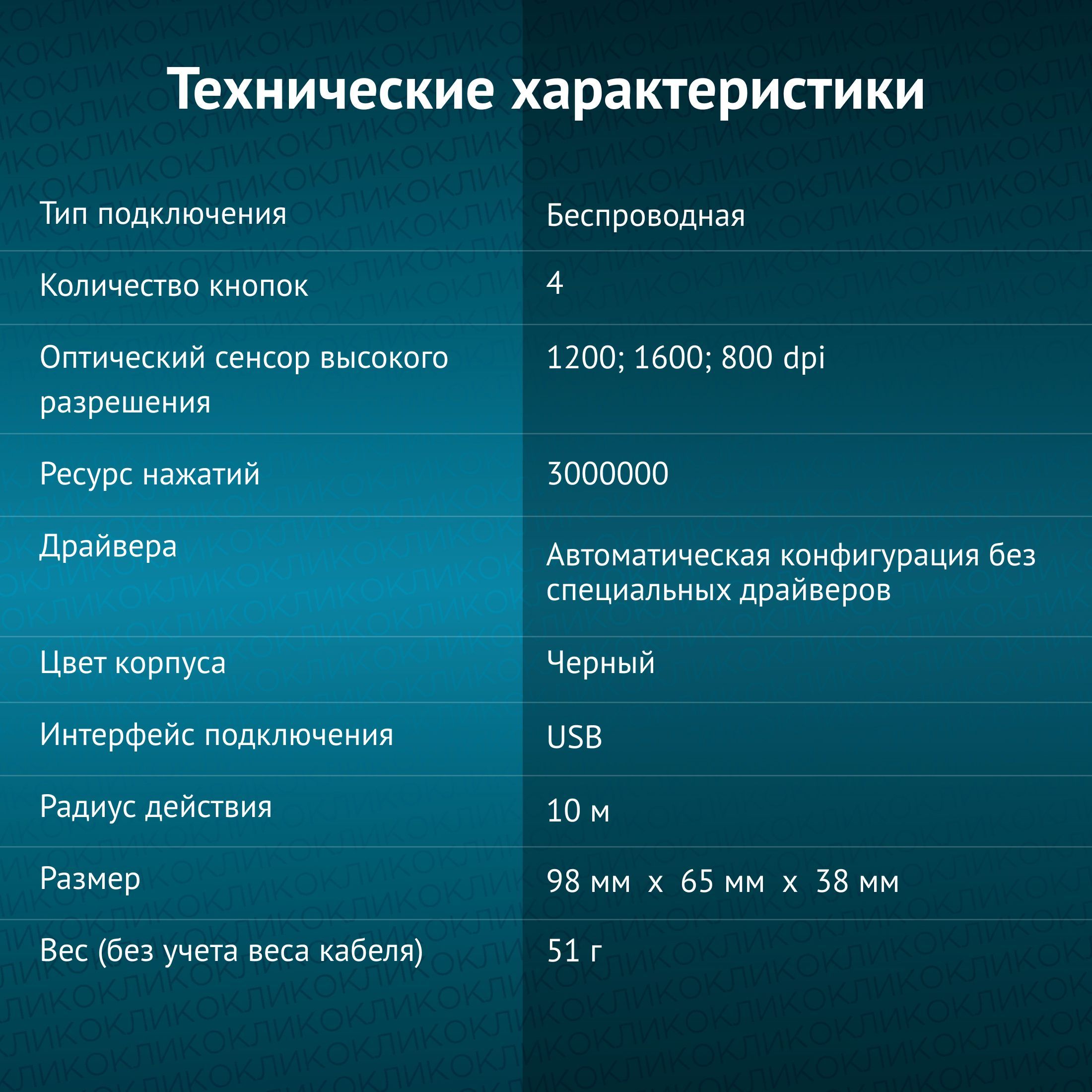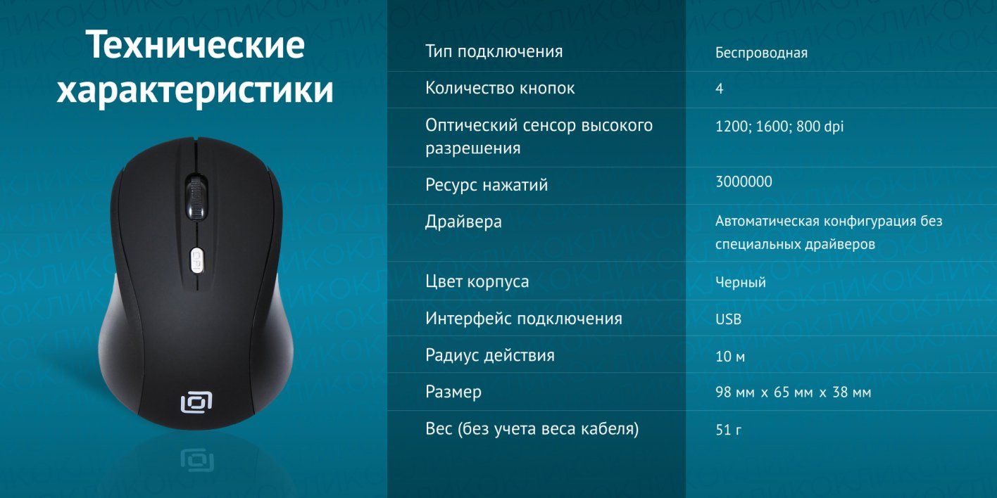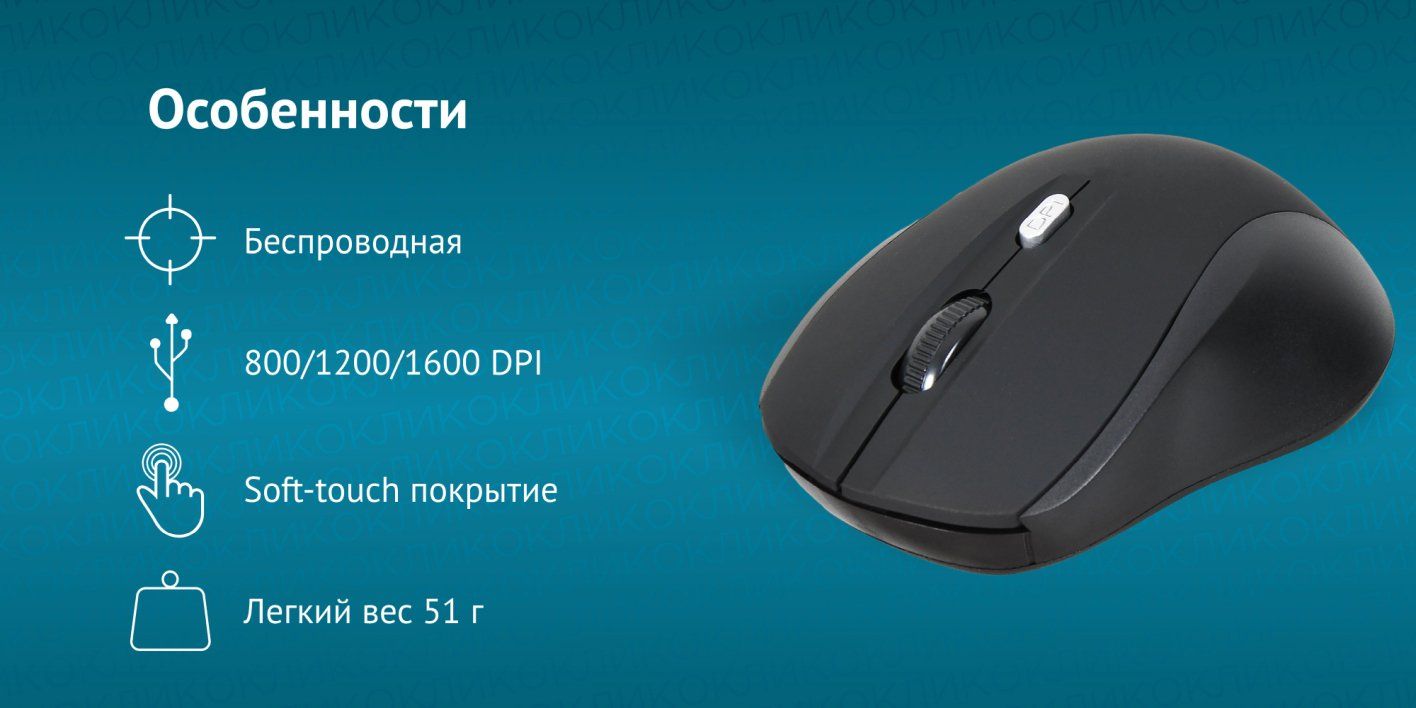 Мышь беспроводная компьютерная Оклик 415MW оптическая, 1600 dpi, USB, 4 кнопки, черная