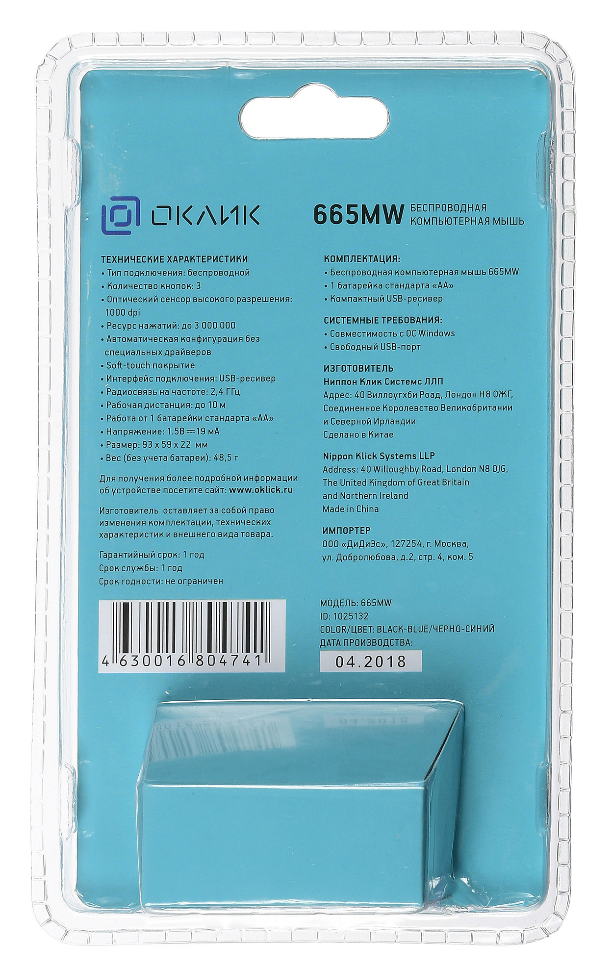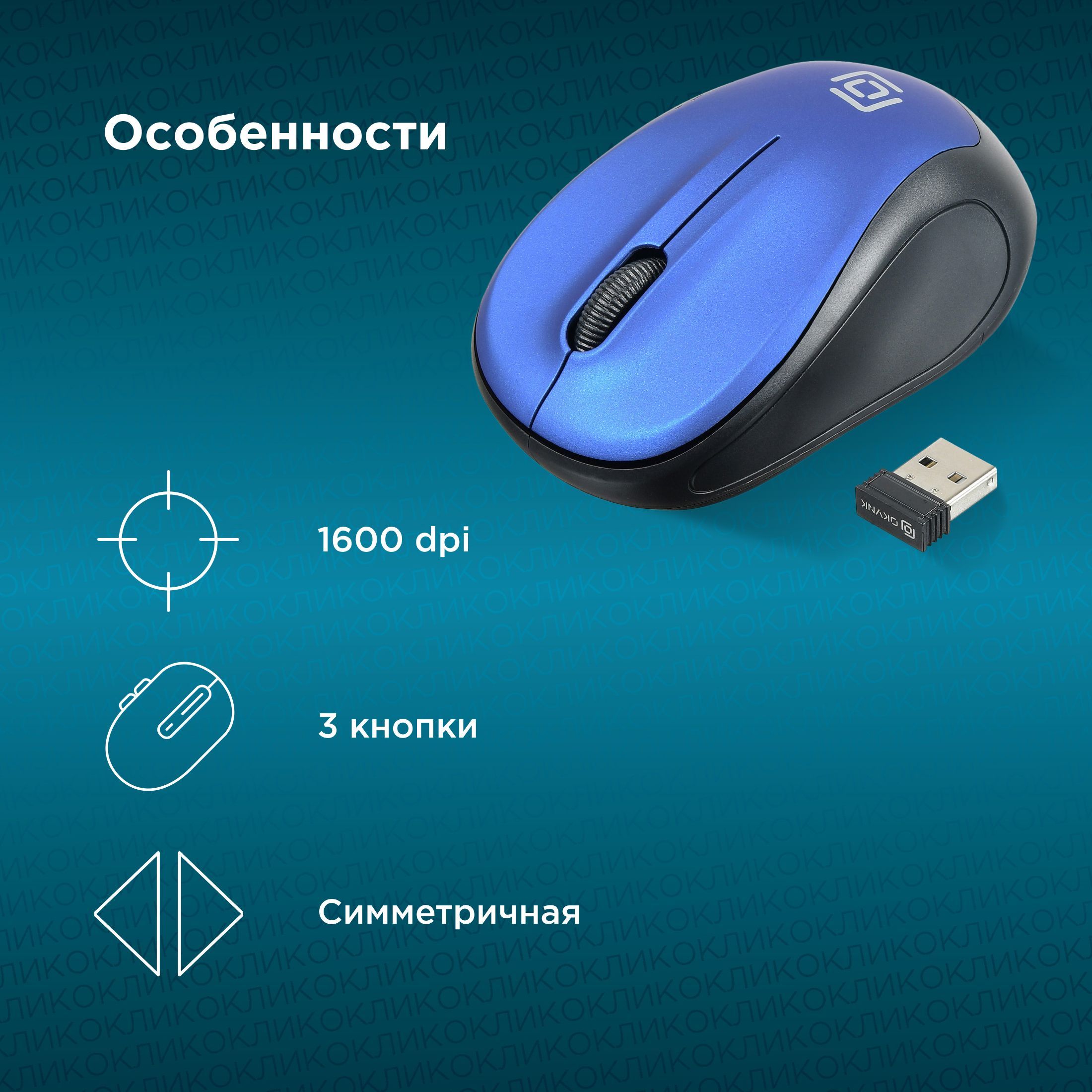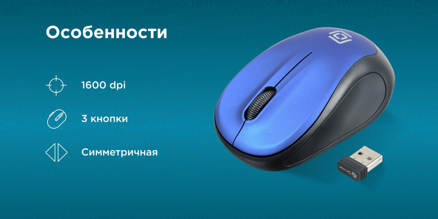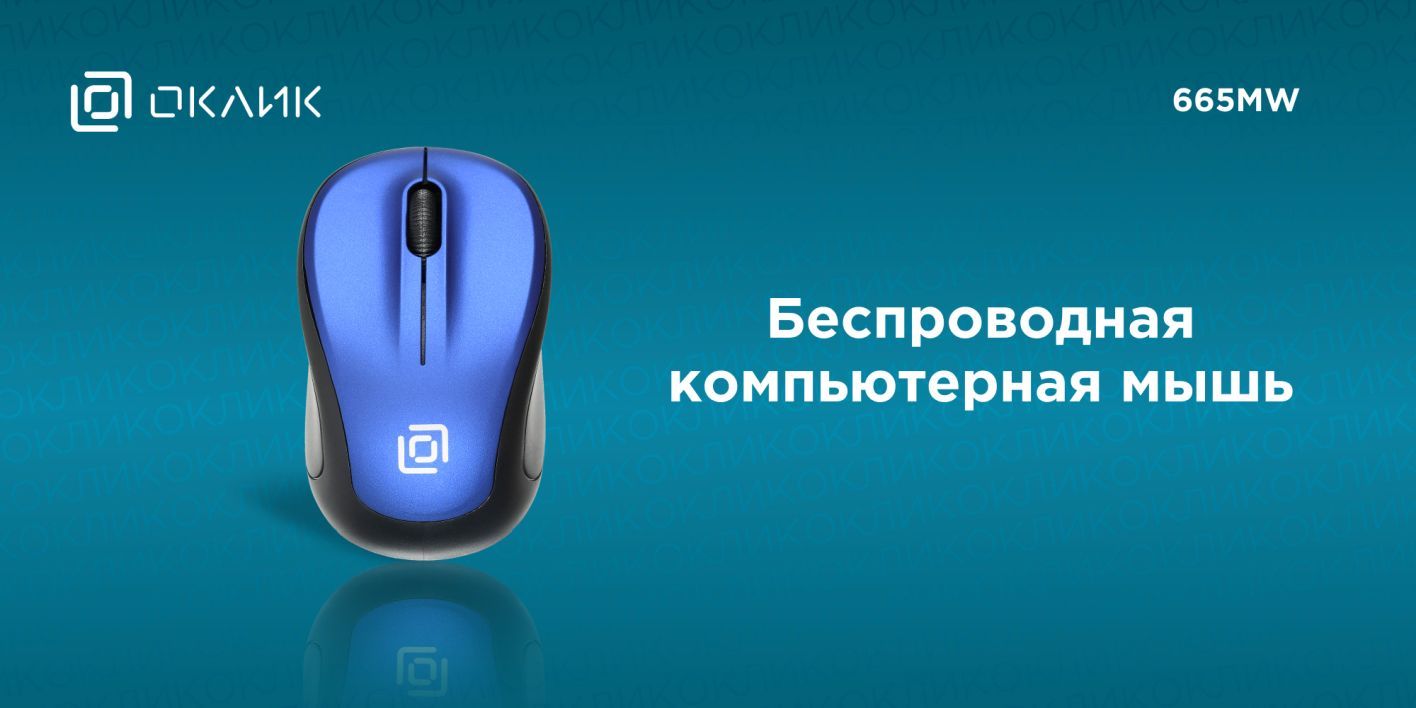 Мышь беспроводная компьютерная Оклик 665MW оптическая, 1000 dpi, USB, 4 кнопки, черно-синяя