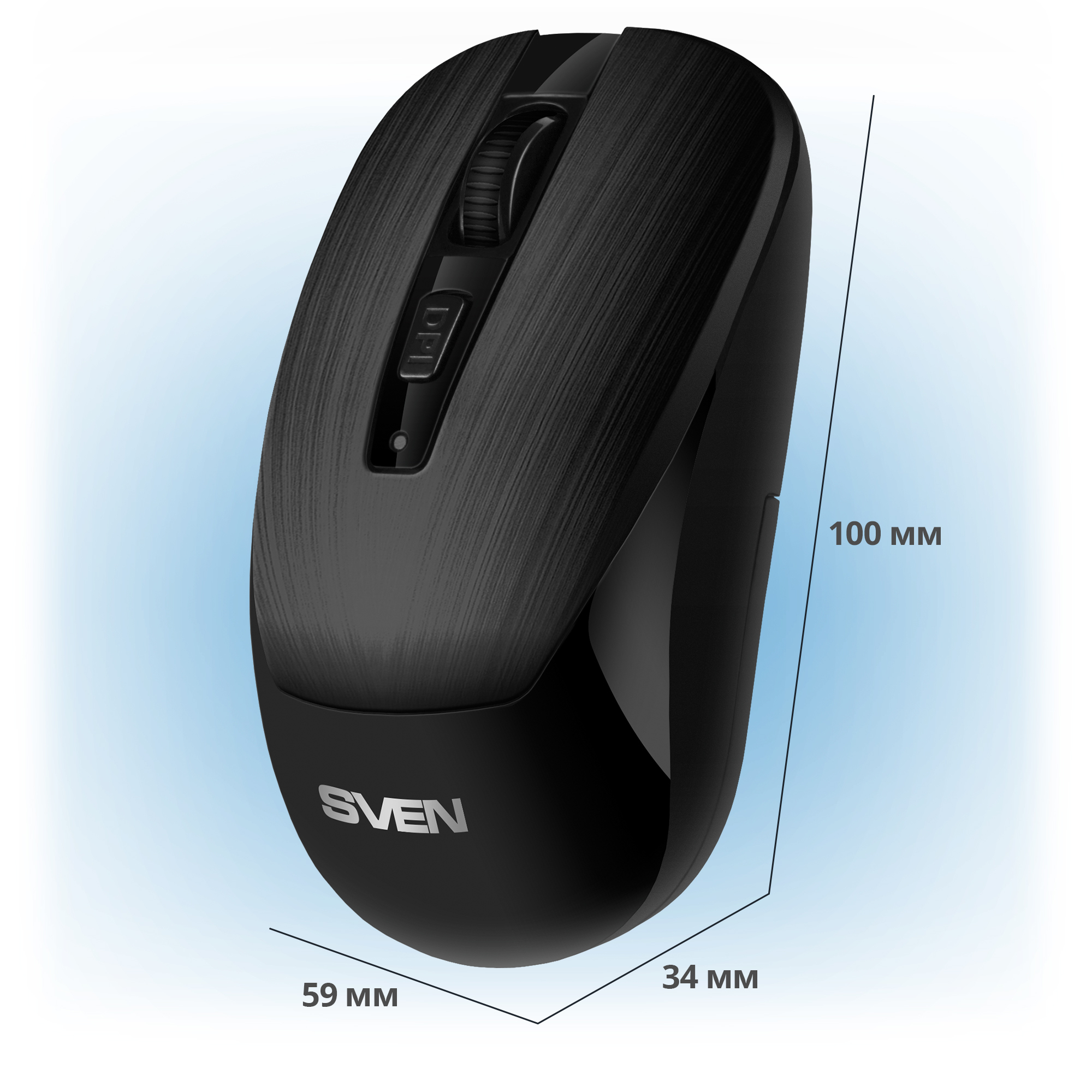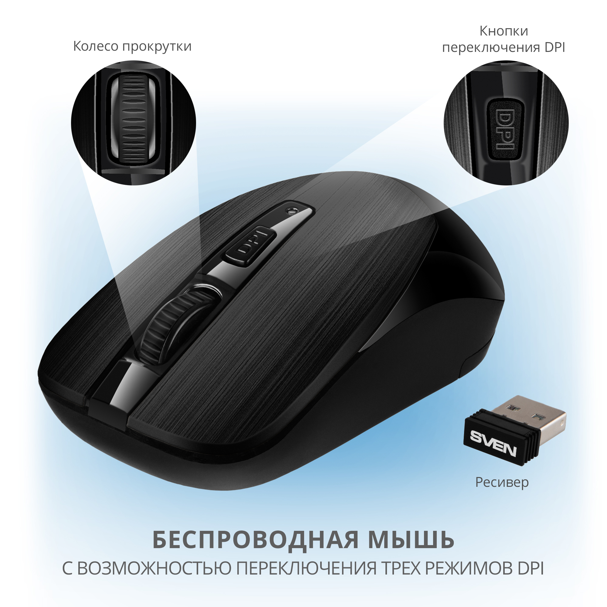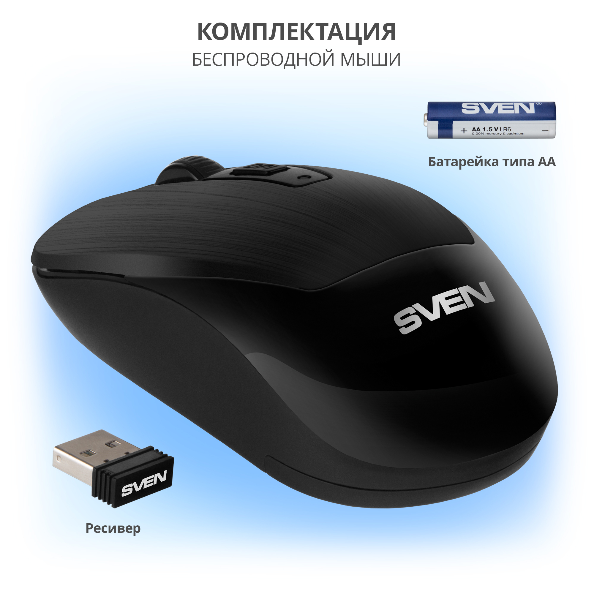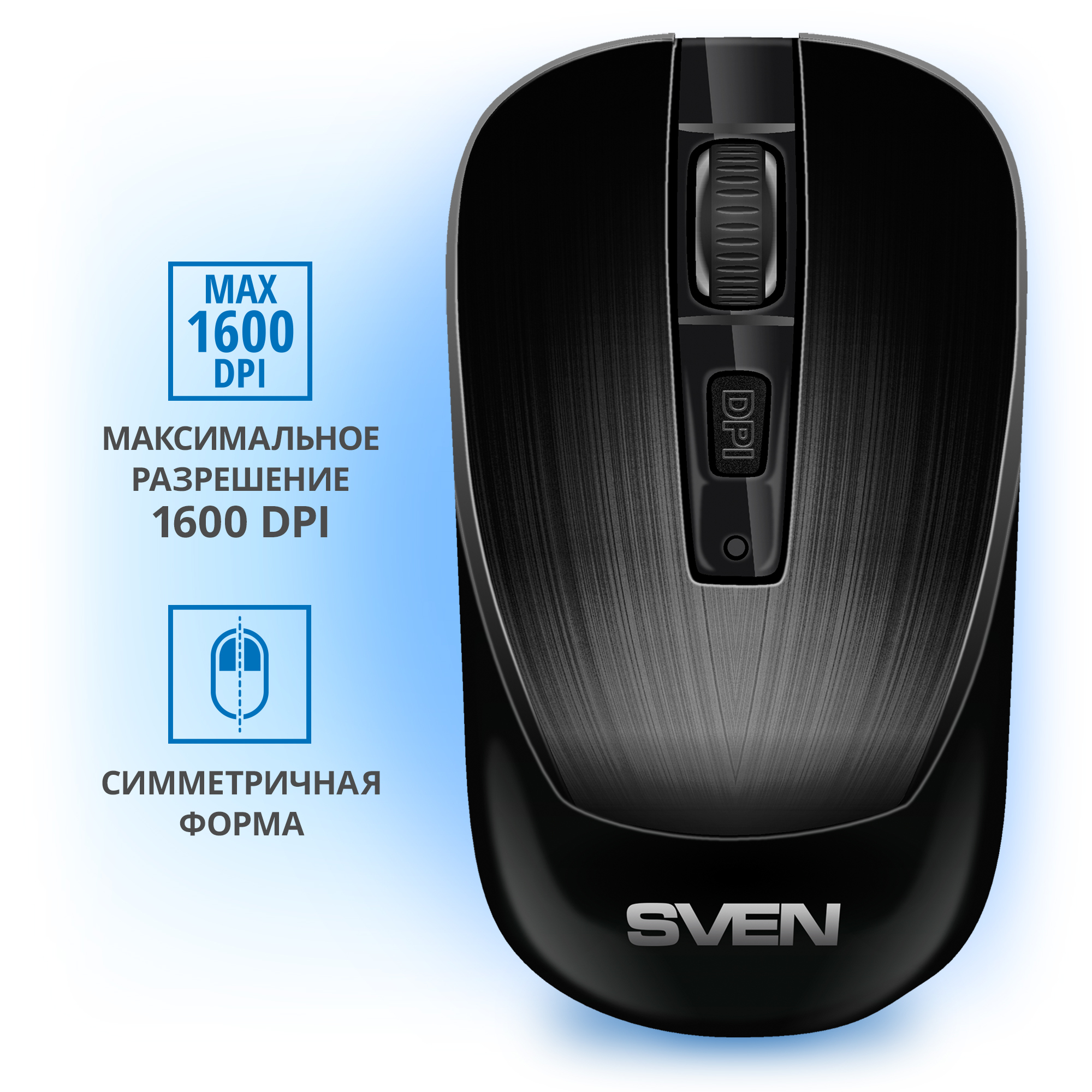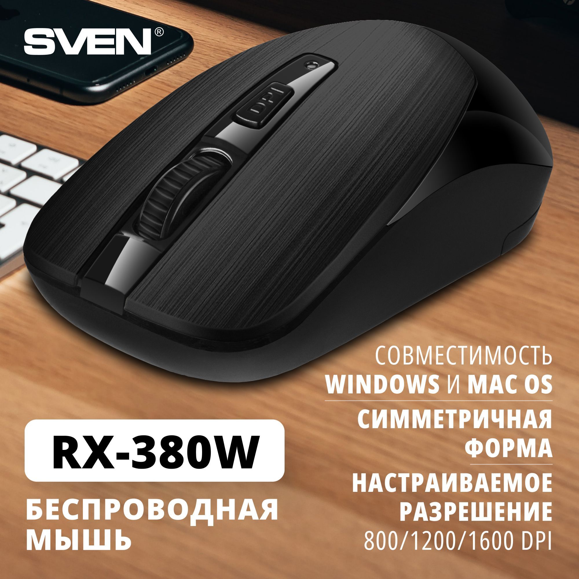 Мышь беспроводная компьютерная оптическая / Мышка для компьютера ПК, ноутбука SVEN RX-380W чёрная / 2,4 GHz / 3+1 клавиш / 800-1600DPI