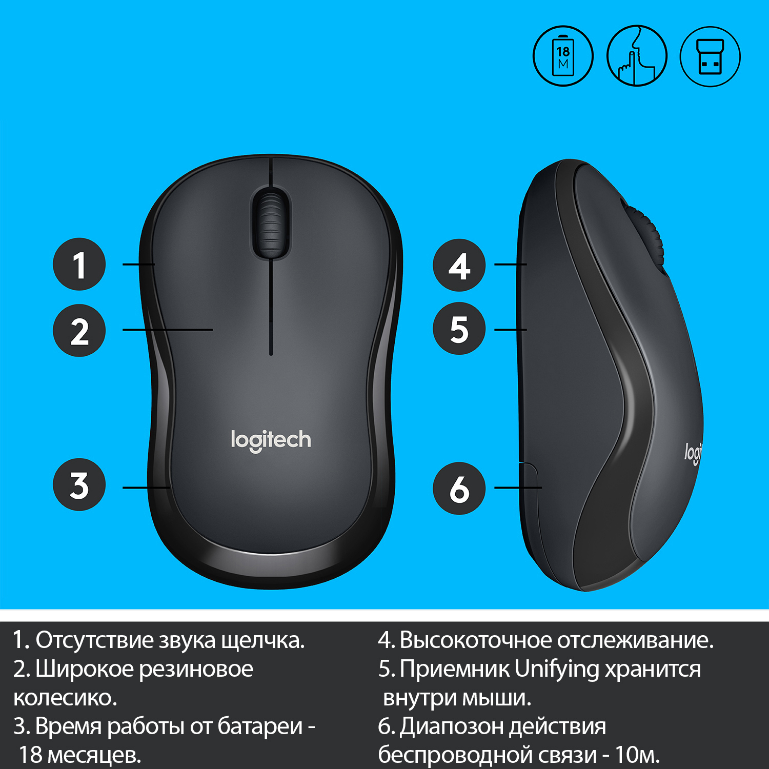 Описание: Простая, надежная мышь Logitech Wireless Mouse M185 с беспроводным подключением по технологии Plug-and-Play.