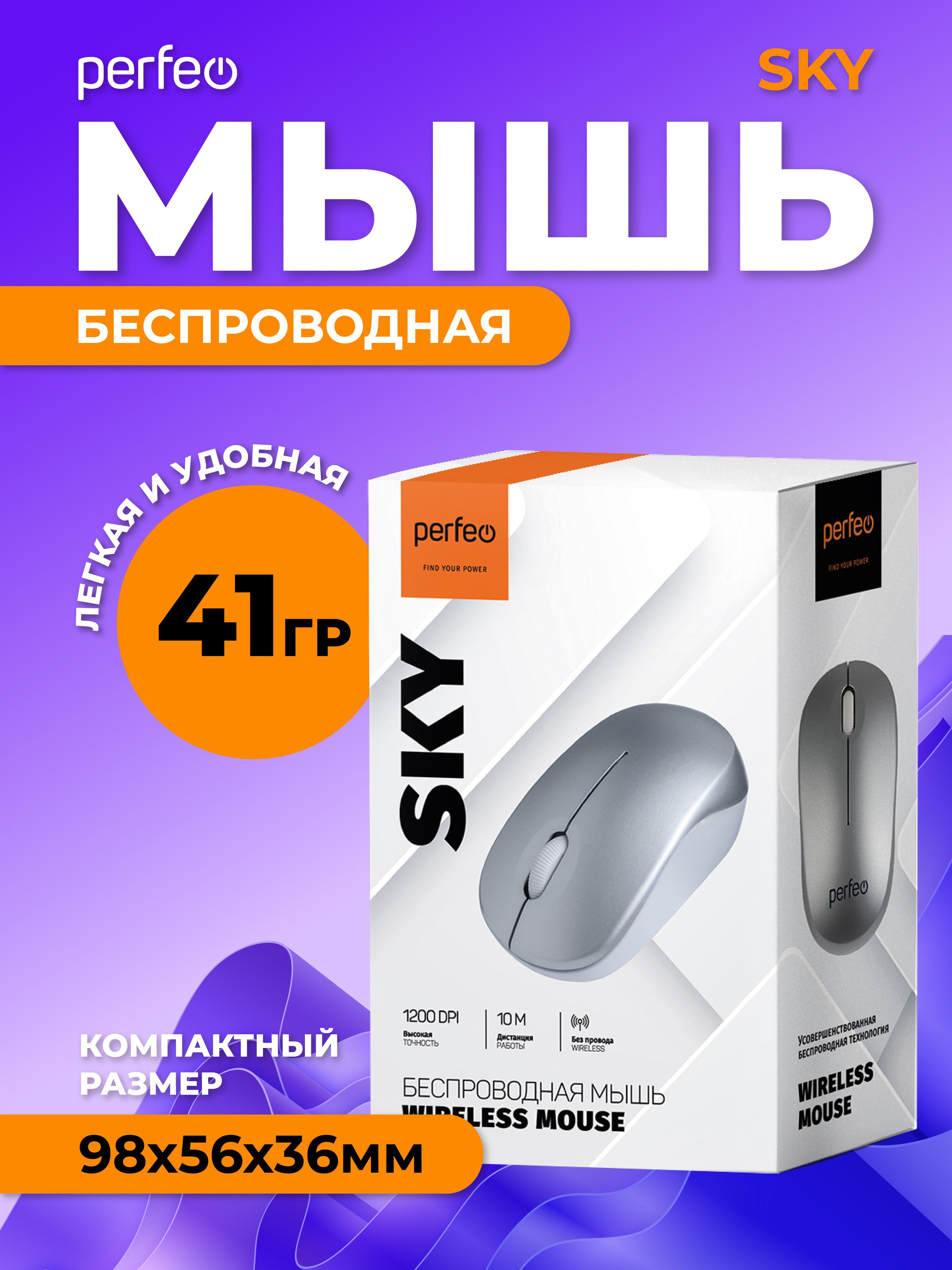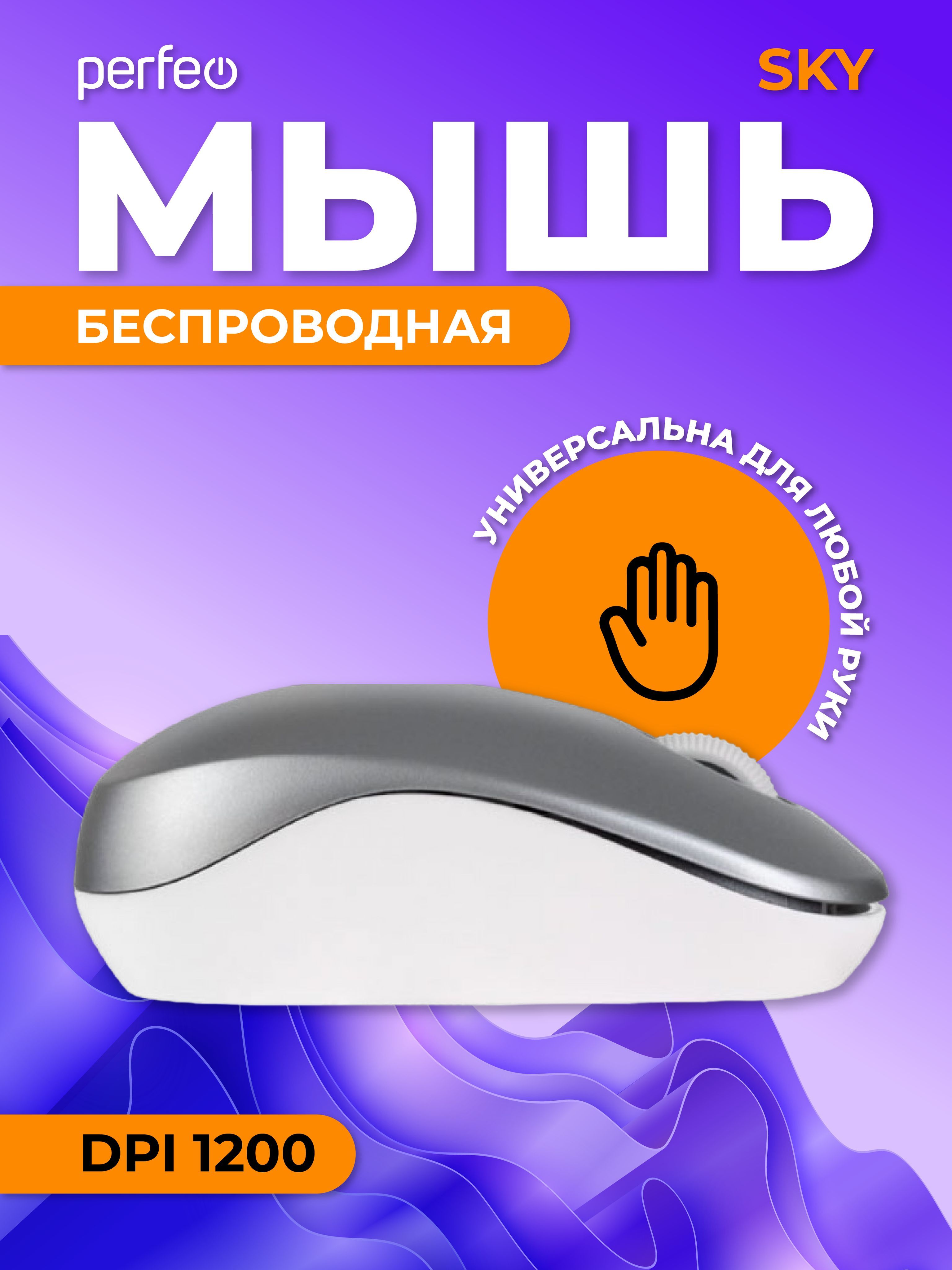 Описание: Беспроводная мышь Perfeo «SKY» с усовершенствованной беспроводной технологией (радиочастота 2,4 ГГц, радиус работы до 10 м). Высокоточный сенсор с разрешением 1200 DPI.