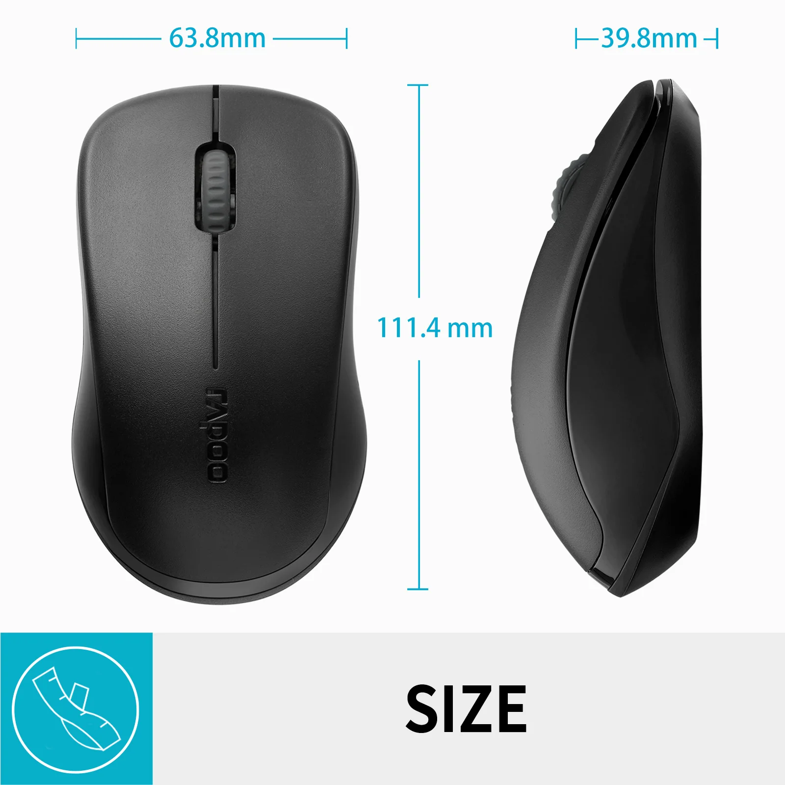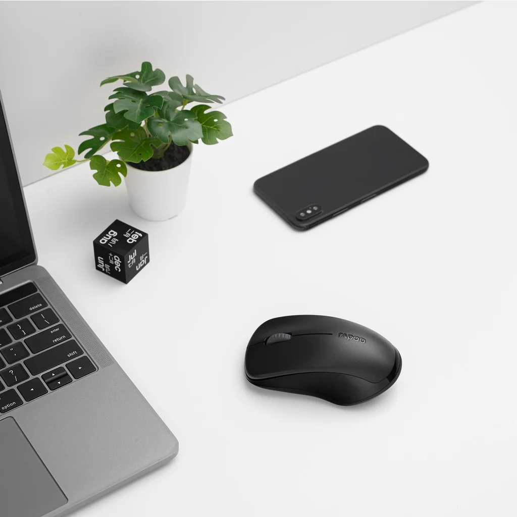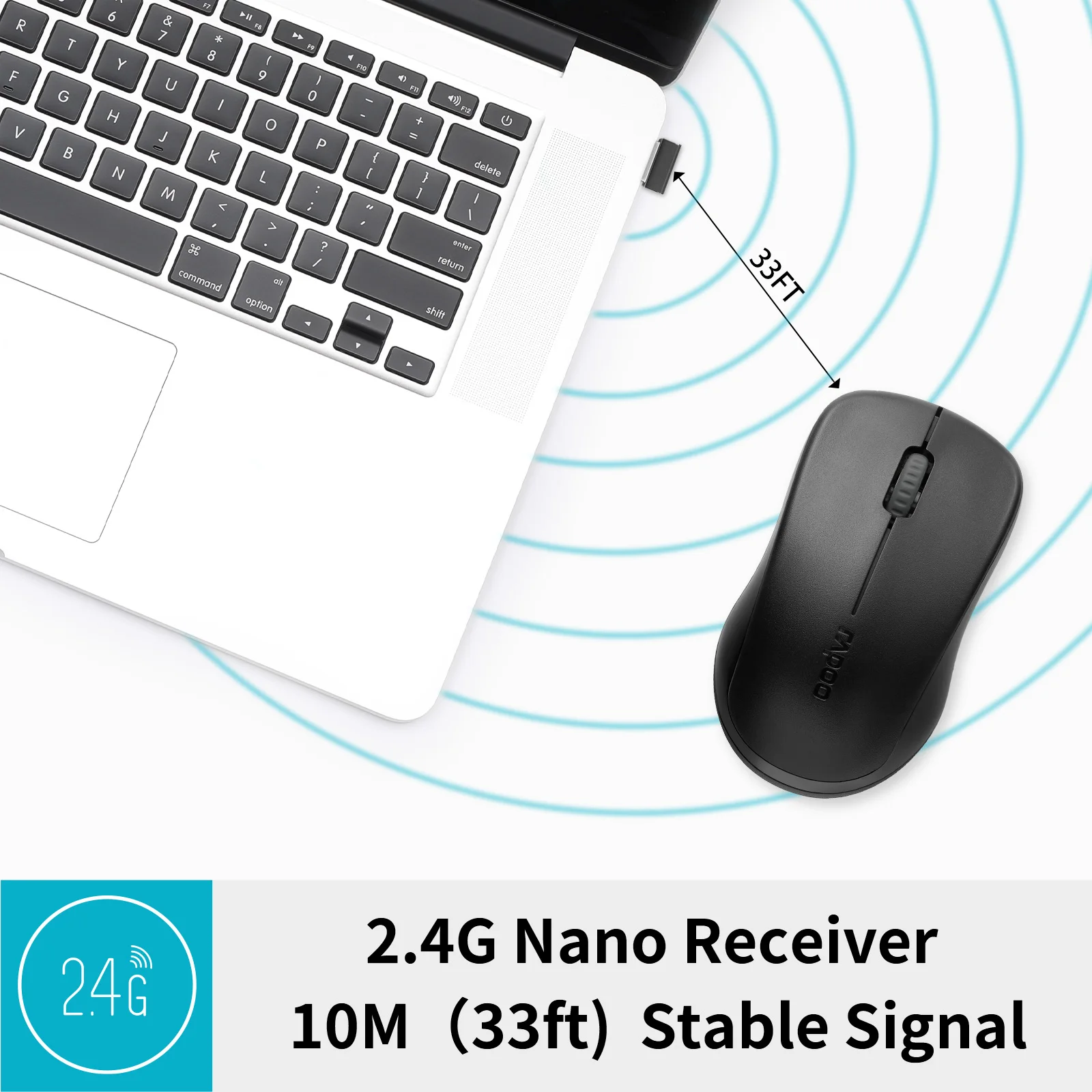 【1000DPI оптическая беспроводная мышь Rapoo основная оптическая мышь использует зрелый беспроводной метод подключения 2,4 ГГц, стабильная защита от помех, широко совместима с ноутбуком/ПК/компьютером. С HD1000 DPI трекинговым двигателем вы будете наслаждаться гибким и плавным управлением курсором с 1000 DPI оптическим трекинговым двигателем высокой четкости.