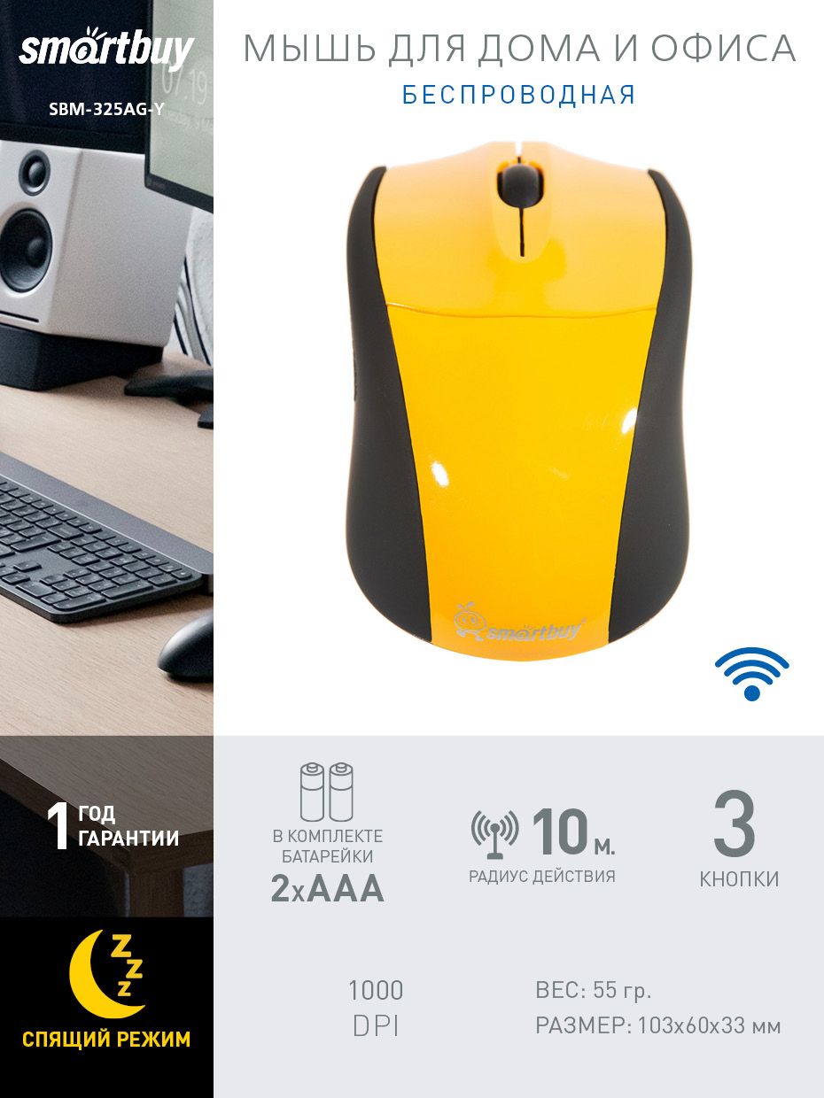 Мышь беспроводная Smartbuy 325AG (SBM-325AG-Y), желтый