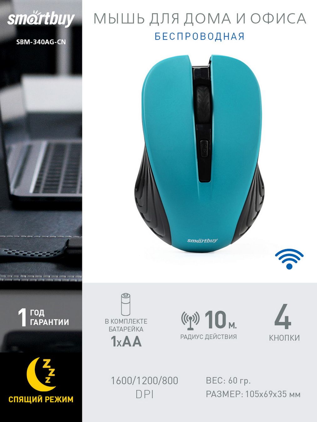 Мышь беспроводная Smartbuy ONE 340AG (SBM-340AG-CN), бирюзовый