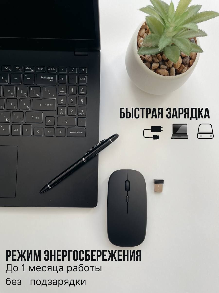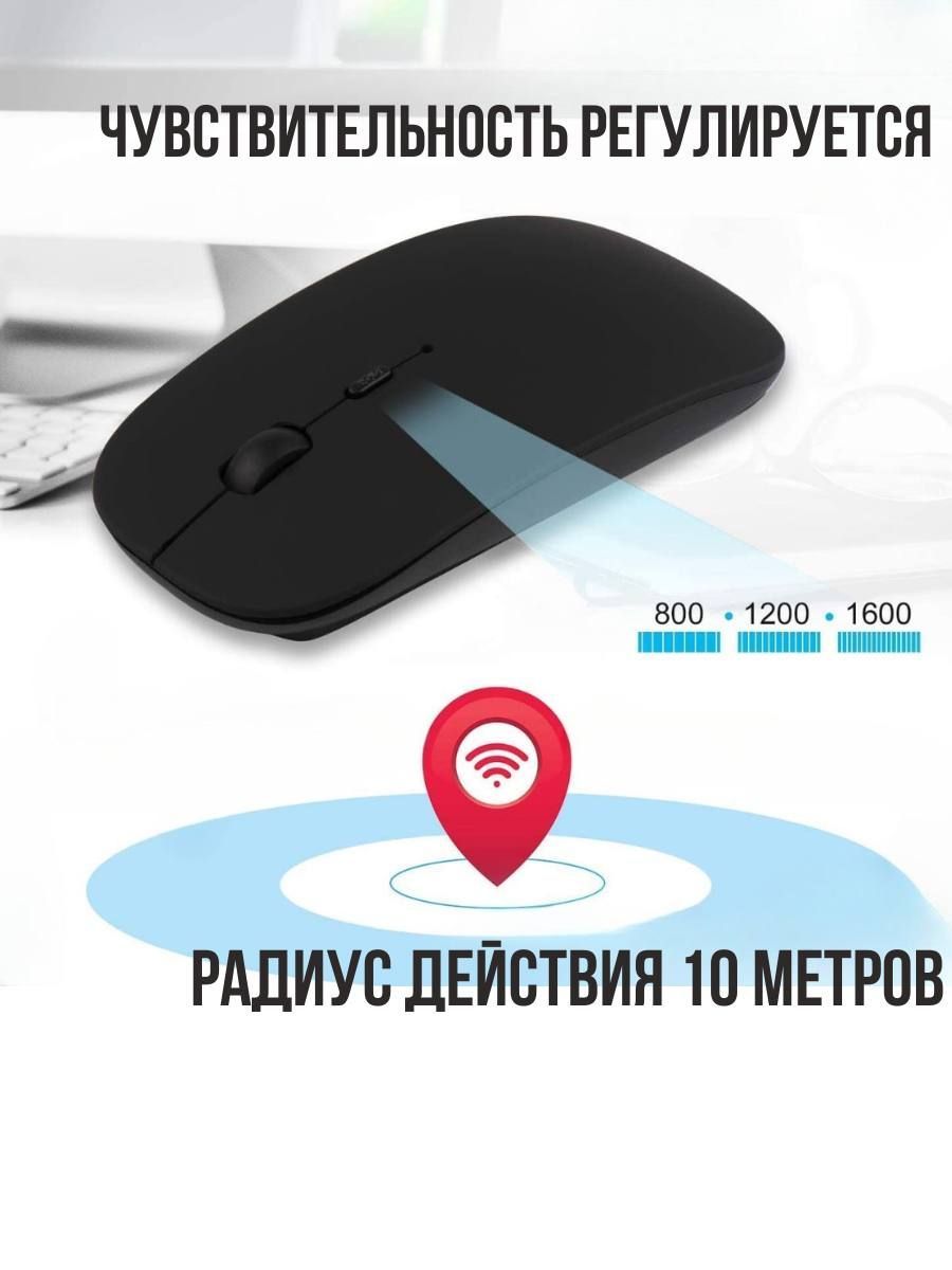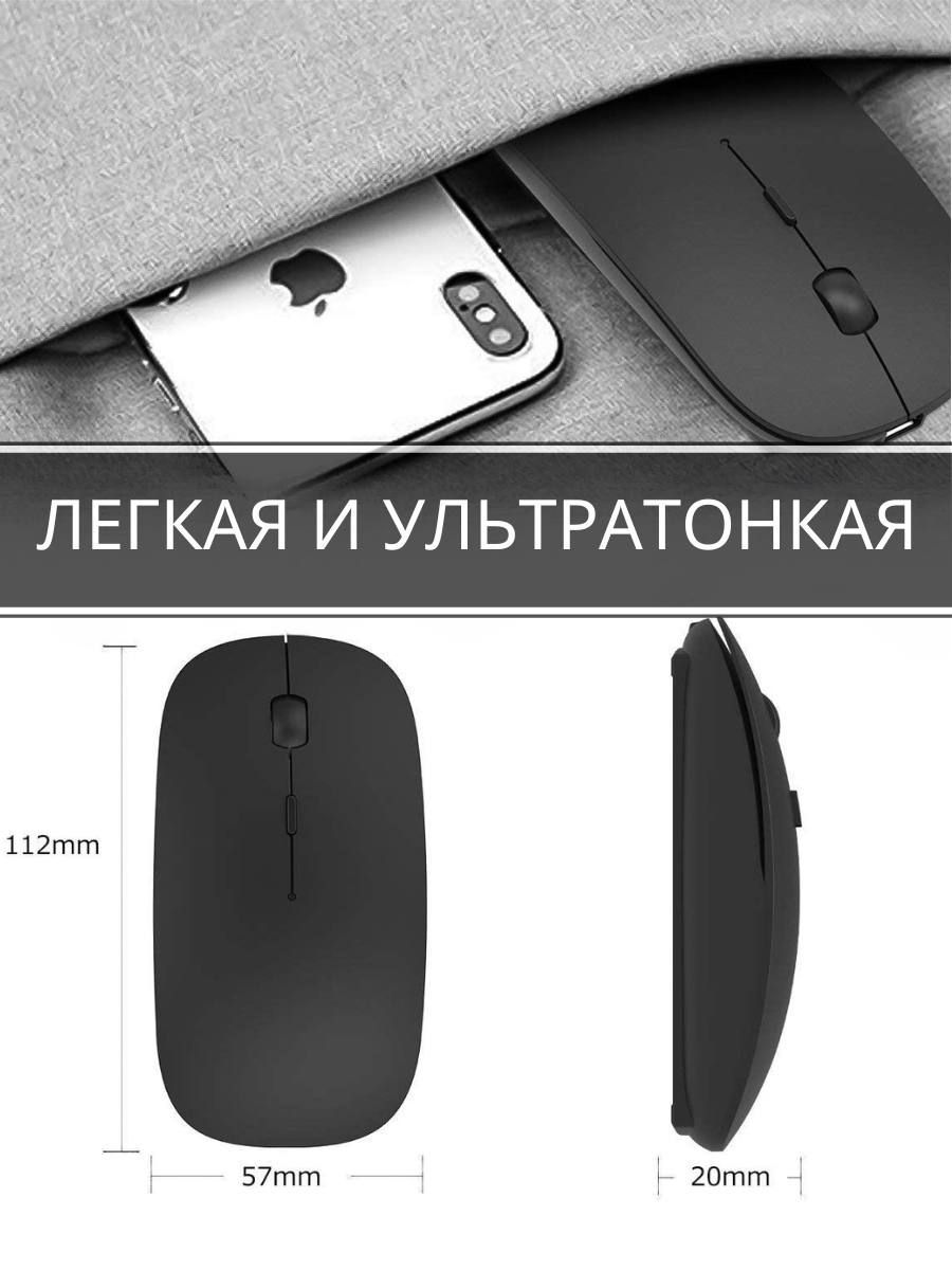 Описание: Беспроводная бесшумная компьютерная мышь. Обладает высокой отзывчивостью, точным лазерным отслеживанием и быстрой реакцией с возможностью регулировки скорости перемещения. Стильный, эргономичный дизайн устройства. Легкая, ультратонкая и компактная. Работает в двух режимах Bluetooth 5.1 или WiFi 2,4G. Заряжается мышь через usb-кабель, не требует батареек. Полный заряд за 2 часа, хватает на 168 часов работы. Бесшумные кнопки снижают уровень шума на 90%. Игровая мышь станет отличным дополнением к компьютеру или ноутбуку. Мышка для ноутбука оснащена двумя классическими кнопками, колесиком, оптическим сенсором с чувствительностью 1200 dpi, внутри перезаряжаемый литиевый аккумулятор. Срок службы клавиш 5 миллионов раз нажатий.