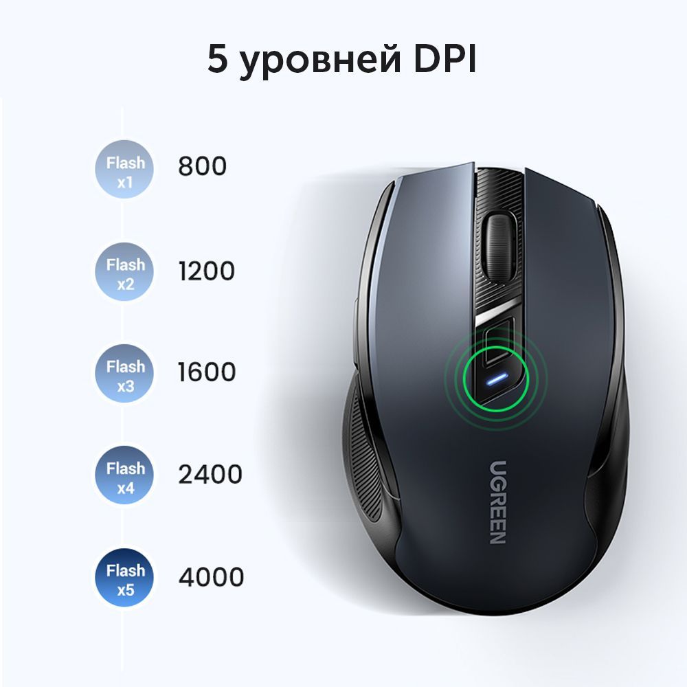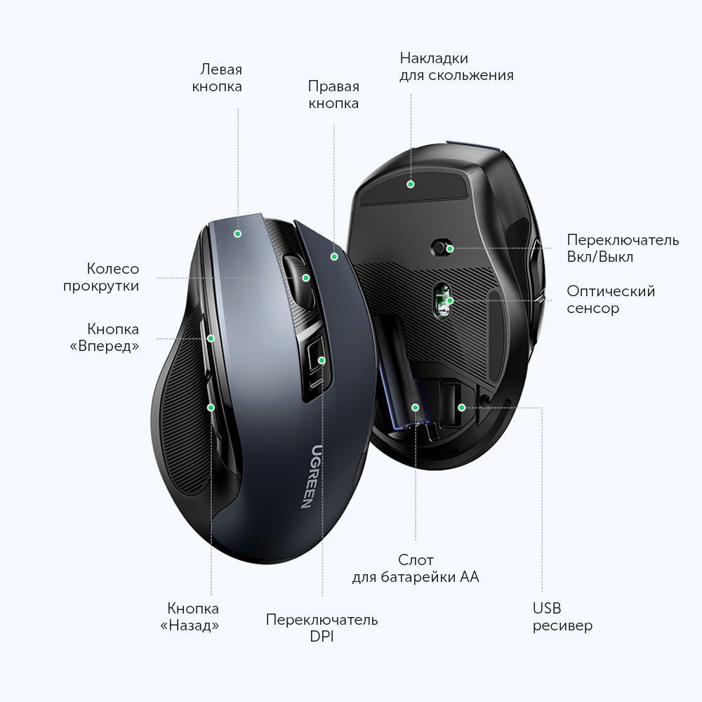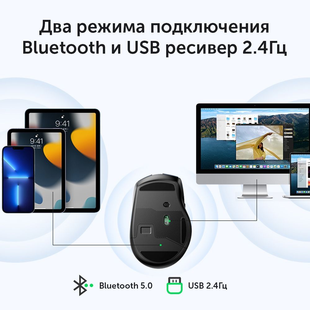 Беспроводная компьютерная мышь UGREEN MU006 (90855) Ergonomic Wireless Mouse 2.4G Wireless & Bluetooth. Цвет: черный