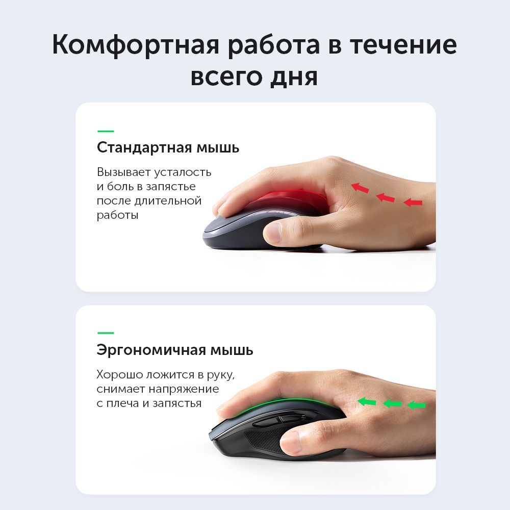 Беспроводная компьютерная мышь UGREEN MU006 (90545) Ergonomic Wireless Mouse 2.4G 4000DPI Silence Design. Цвет: черный