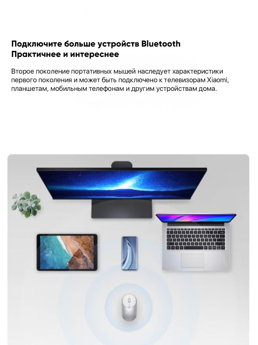 Portable Mouse отлично работает на любой поверхности, демонстрируя точность 95 % на стекле, ткани и бумаге. Ее можно использовать не только с ПК и ноутбуком, но и с планшетом или Mi TV.