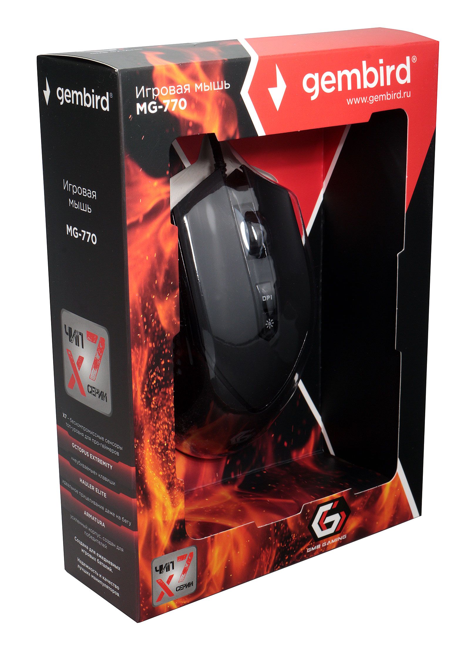 Мышь игровая Gembird MG-770, 3200DPI, с регулируемой подсветкой, армированный кабель 1.8 м