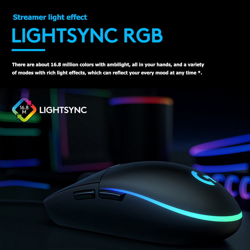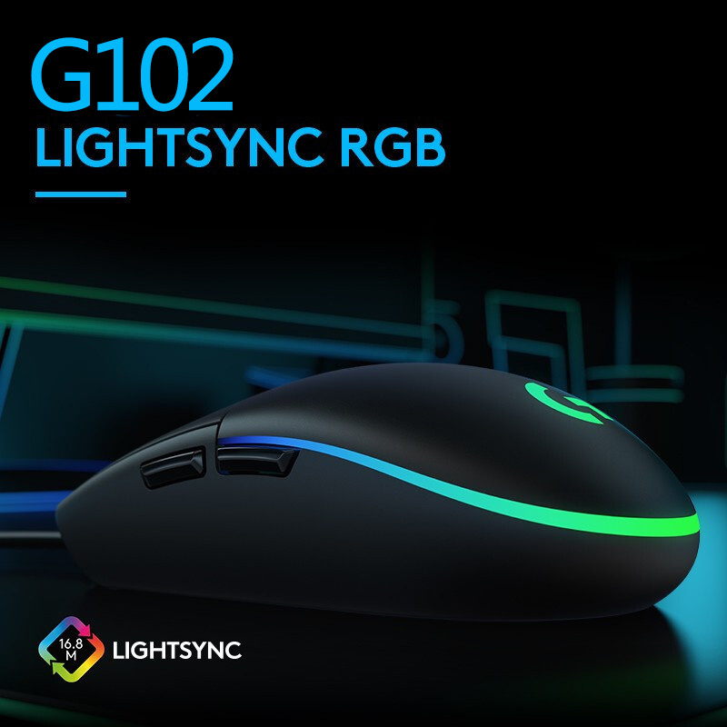 Make the most of your game time with G102 gaming mouse, featuring LIGHTSYNC technology, a gaming-grade sensor and a classic 6-button design. Light up your game...and your desk.