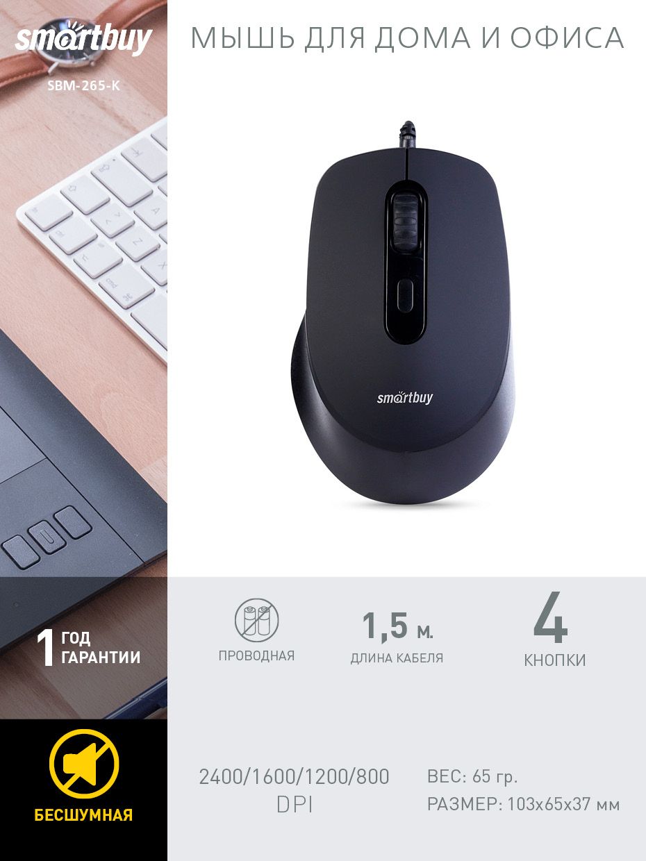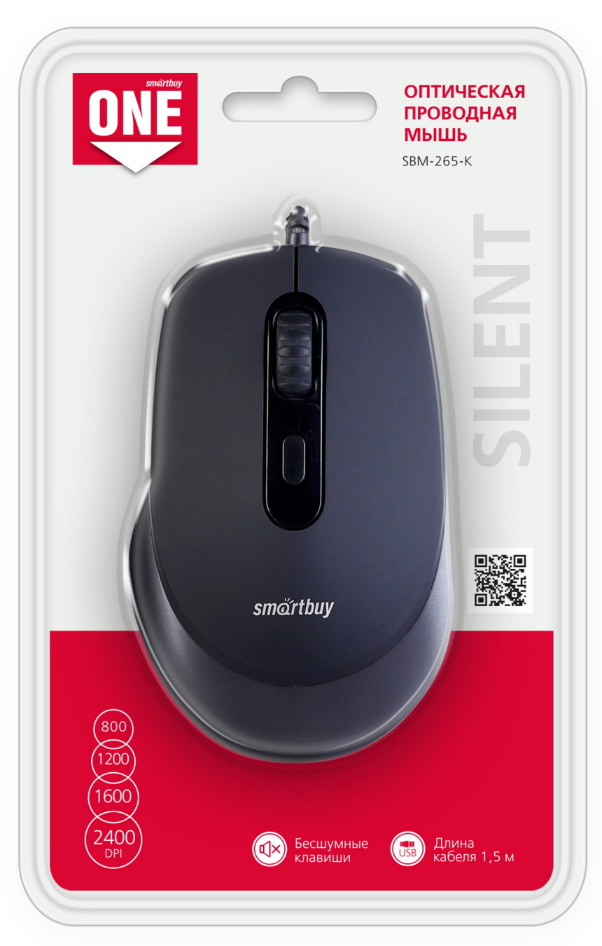 Мышь проводная бесшумная Smartbuy ONE 265 (SBM-265-K), черный