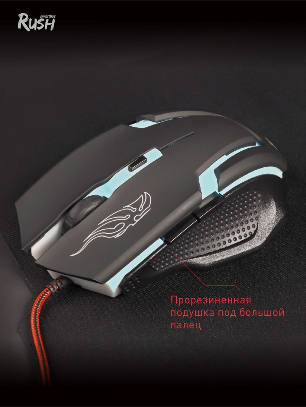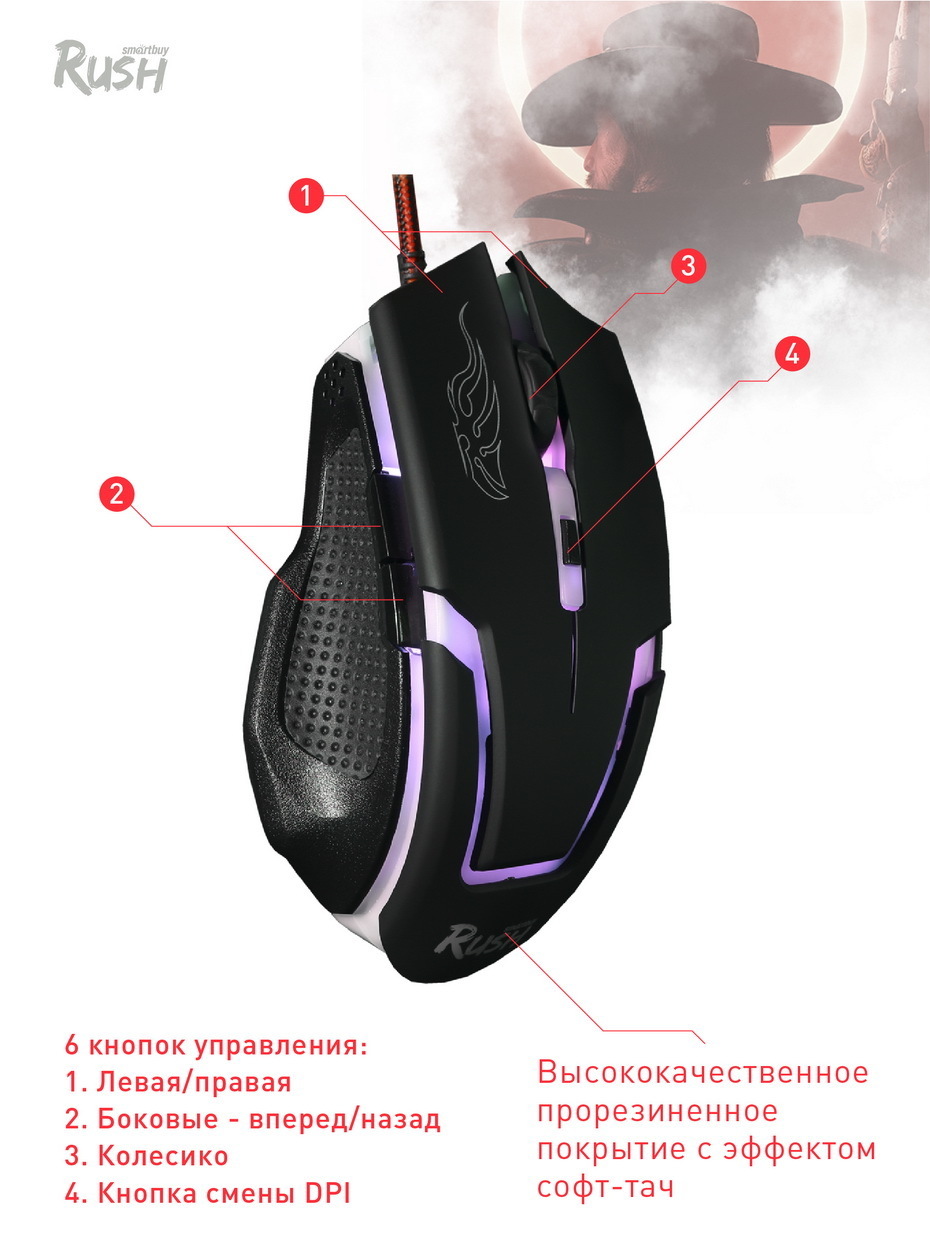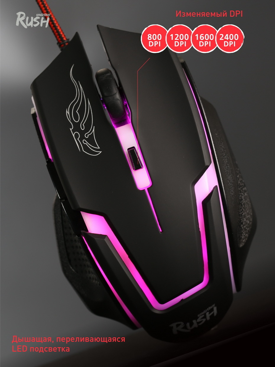 Описание: Игровая мышь WALKER специально разработана для настоящих геймеров. "Доминируй и побеждай!" - вот главная предрасположенность данной игрой мыши. Приятное покрытие софт-тач придаёт уверенность в каждом движении и клике. Точное позиционирование курсора происходит благодаря высокоточечному сенсору. Можете быть уверены - за управлением Smartbuy Rush WALKER - ваш снаряд точно попадёт в нужную цель и враг будет повержен! . Сенсор SPCP168A. IPS (линейная скорость в дюймах) - 30