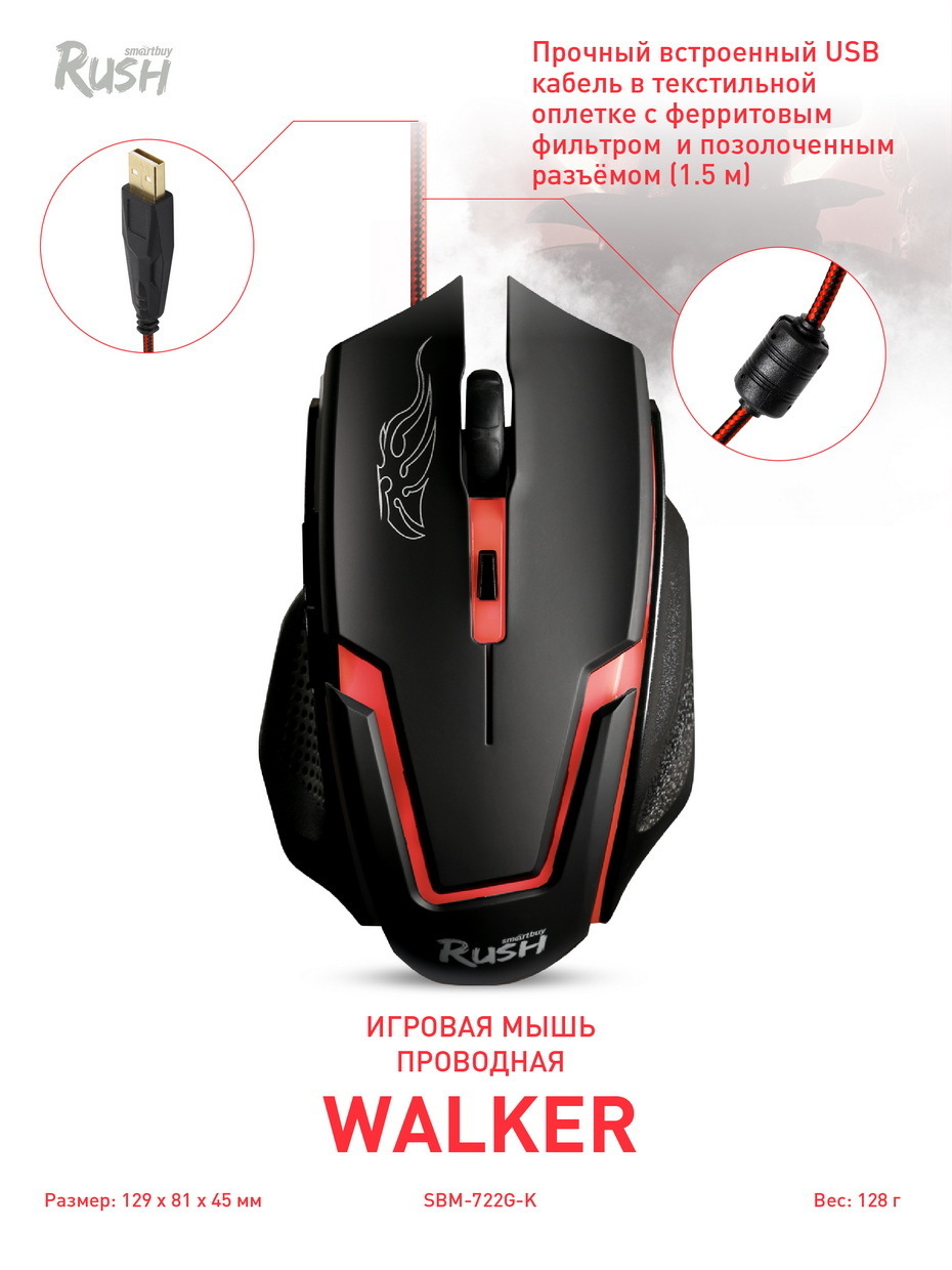 Мышь проводная игровая Smartbuy RUSH 722G Walker (SBM-722G-K), черный