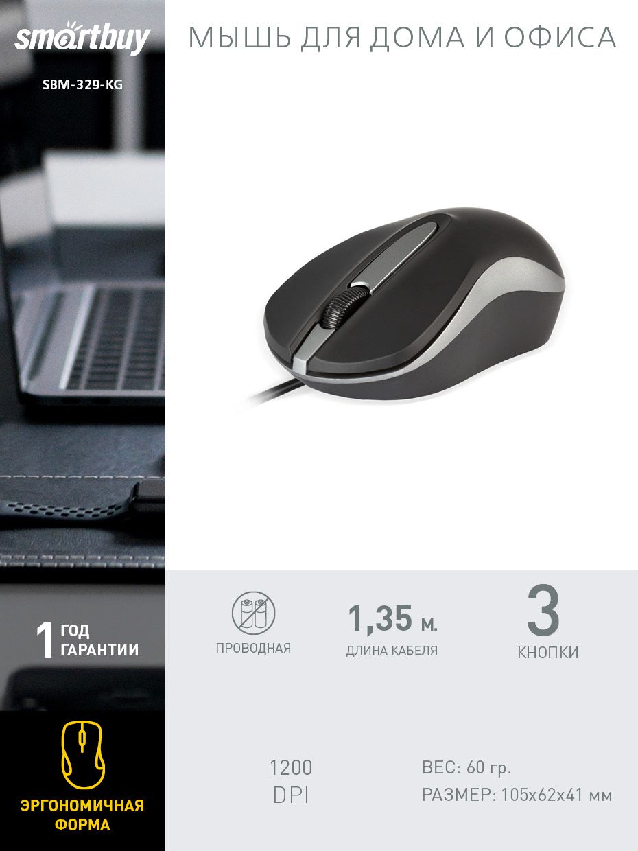 Мышь проводная Smartbuy ONE 329 (SBM-329-KG), черно-серый