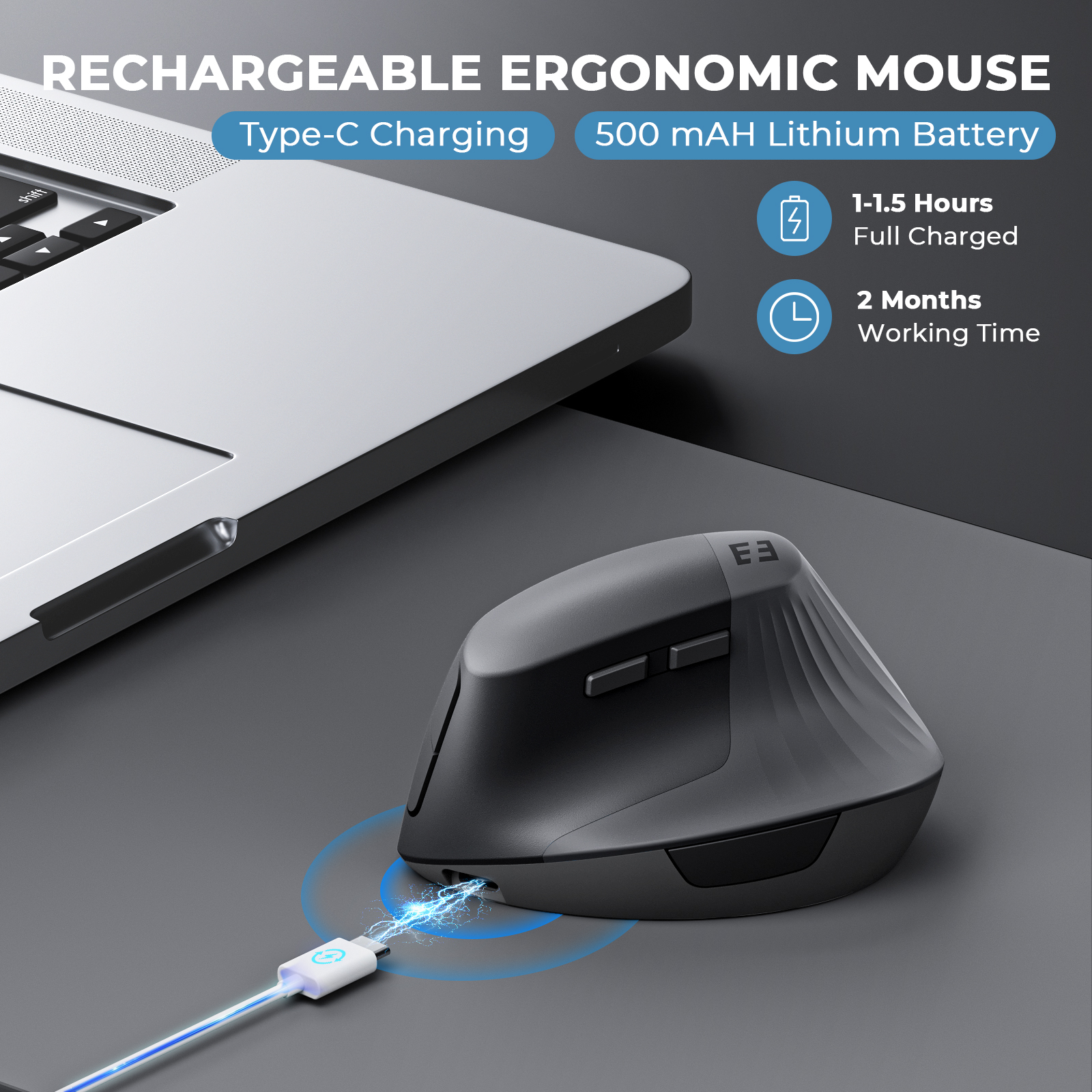 Оснащенная встроенной литиевой батареей 500 мАч, эта беспроводная Вертикальная мышь обеспечивает Срок службы батареи более 2 месяцев от одной зарядки.
