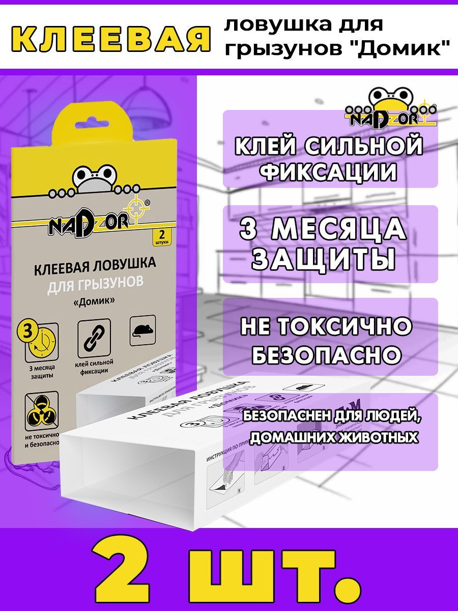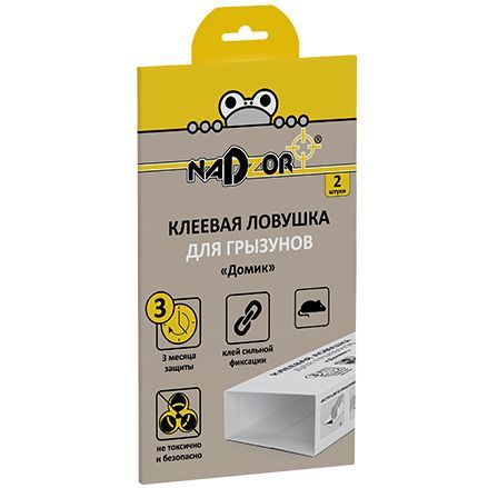Клеевая Ловушка для мышей " Домик " Nadzor - 2 штука – специальное средство для многоразового использования, с помощью которой вы сможете легко отловить крыс и мышей. Ловушка считается полностью безопасной для людей. В качестве основной приманки считается ароматный пищевой аттрактант, который приманивает грызунов. В качестве основного дополнения используется специальное минеральное масло.