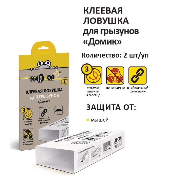 Клеевая ловушка домик от грызунов крыс и мышей NADZOR средство клей от вредителей насекомых Надзор 2 штуки в уп