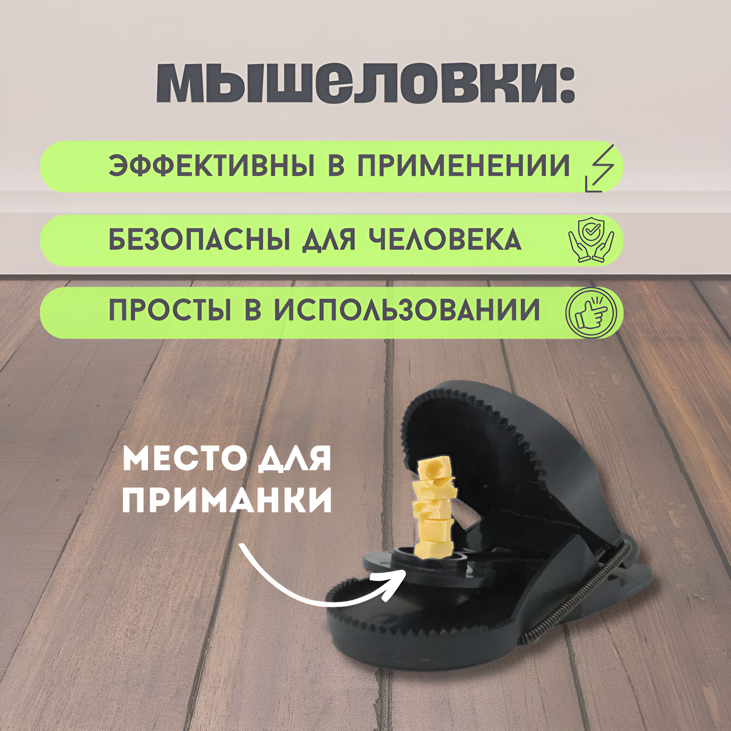Данные ловушки управляются всего одной, но достаточно мощной пружиной, охватывающей всю заднюю часть захлопывающегося механизма. В мышеловке для приманки имеется специальный отсек - "сторожок" в него необходимо расположить приманку для мышей (это может быть: копчённая колбаса, сухарик, кусочек сала, ватка пропитанная нерафинированным растительным маслом и т.д.), а за тем необходимо закрыть колпачок. Колпачок на сторожке затрудняет грызуну доступ к приманке, мышь пытаясь достать приманку надавливает на сторожок - мышеловка захлопывается. Устанавливать мышеловки необходимо Обязательно в Перчатках, так как запах ваших рук может отпугнуть грызуна и мышь не пойдёт в ловушку, но продолжит пакостить уже в другом месте вашего жилища. Незаменимая в хозяйстве многоразовая мышеловка не имеет срока годности и в случае необходимости всегда придет вам на помощь!