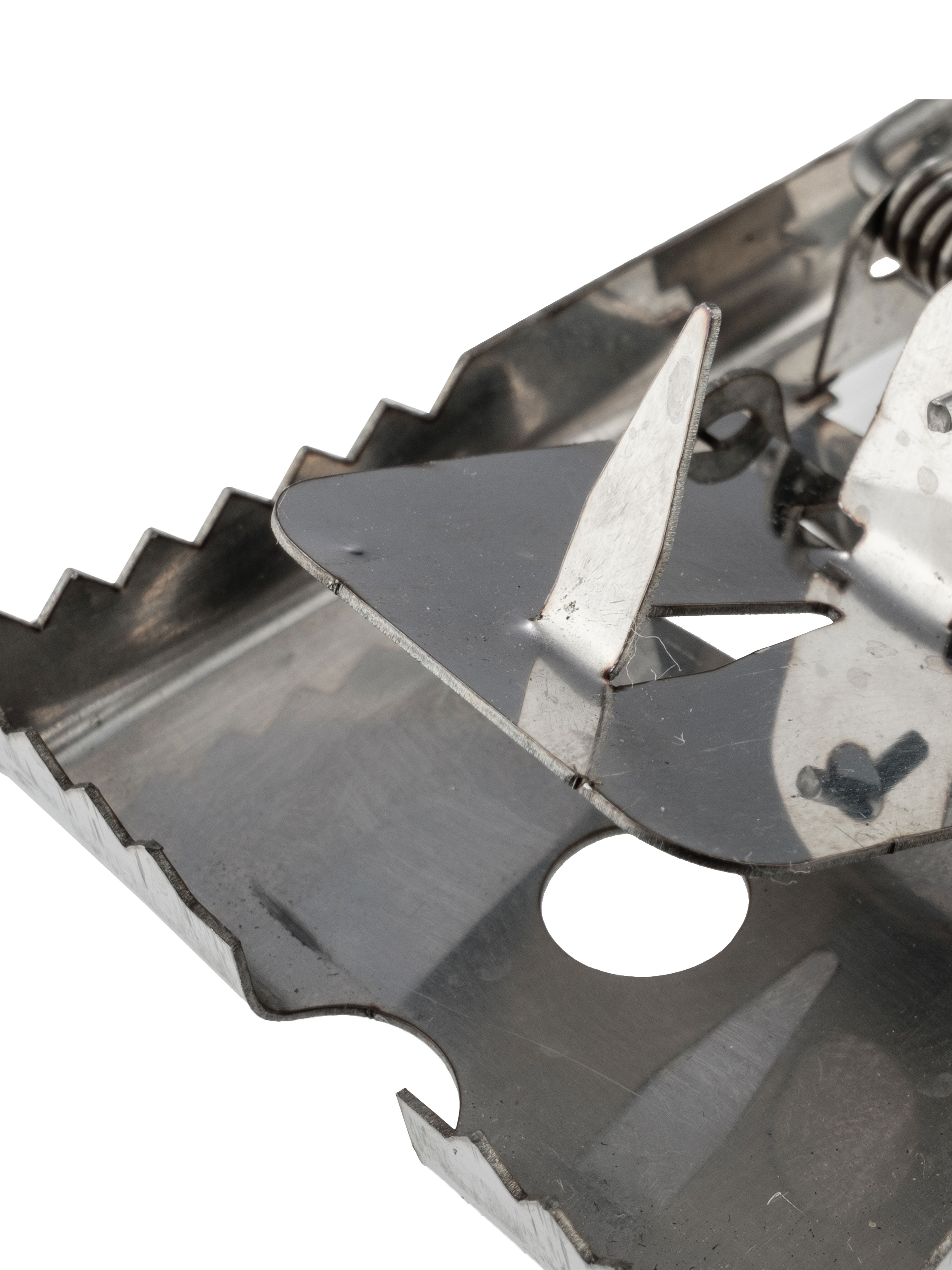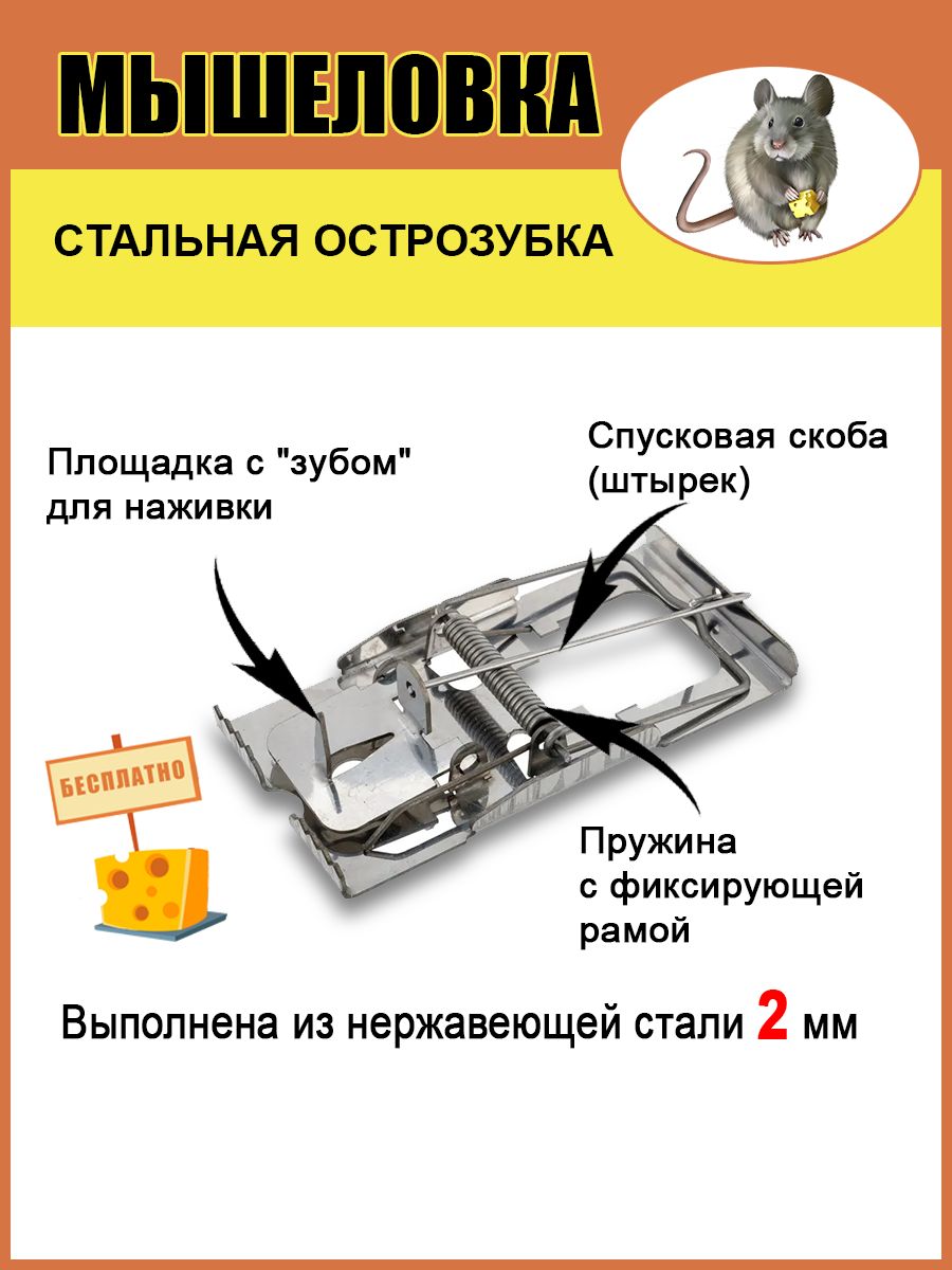 - Площадка с «зубом» для наживки.мышеловка острозубкаХарактеристикиУстройство изготовлено из нержавеющей стали. Завод дает гарантию полного исключения проблемы случайных срабатываний. Также в мышеловке предусмотрена максимально эффективная фиксация грызуна (зубчатые окончания).