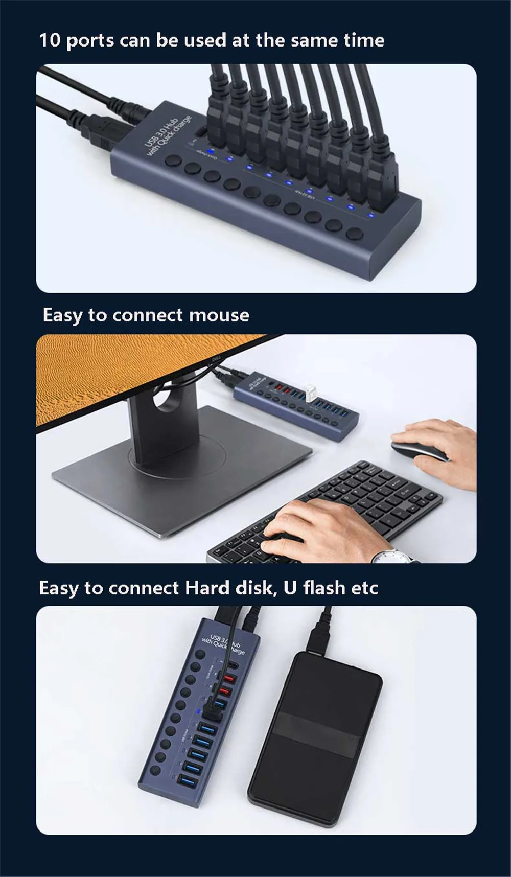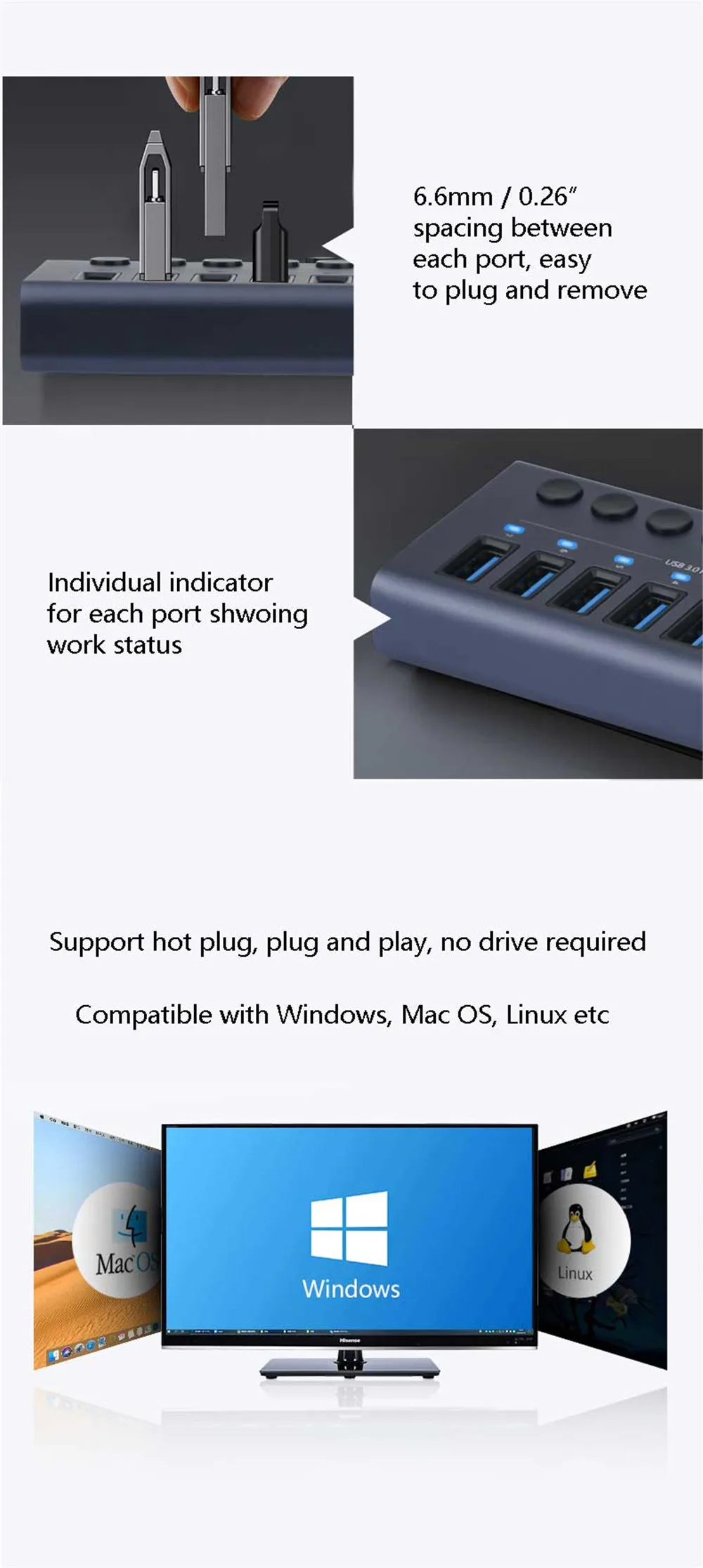 * Расширение 10 портов USB 3,0 для вашего ПК, ноутбука, смарт-телевизора или игровой консоли.